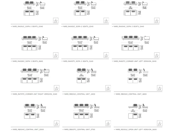 Sofá Yard de Lema Una composición del sofá Yard de Lema El sofá Yard en un entorno Versión de tela del sofá Yard por Lema Versión del sofá Yard de Lema de dos plazas Telas disponibles para el sofá Yard Cueros disponibles para el sofá Yard Combinaciones posibles para el sofá Yard de Lema