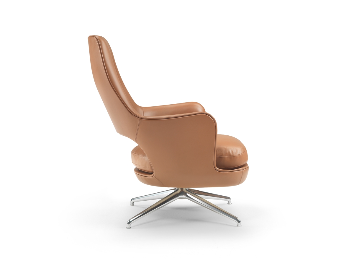 El diseñador Antonio Citterio ha creado el nuevo sillón Eliseo para la colección 2022 de Flexform, añadiendo un elemento de alta calidad artesanal y un increíble confort a la ya conocida línea de asientos. El sillón Eliseo se caracteriza por su elegancia formal y su ergonomía, cuyas líneas suaves y envolventes te conquistarán a primera vista. La estructura de doble carcasa de poliuretano rígido moldeado y espuma de poliuretano flexible soporta el cojín del asiento de plumón de ganso esterilizado con una inserción de material indeformable de una sola densidad. Puedes elegir la base de tu sillón entre una base giratoria de 4/5 radios con mecanismo continuo de aluminio fundido a presión en acabados satinado, cromado, bruñido, cromado negro y antracita pulido o la base fija de madera maciza de nogal canaletto en varios acabados.