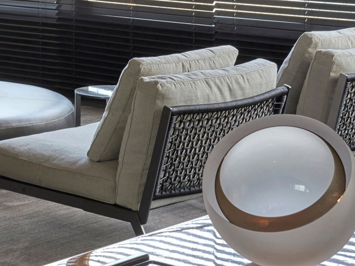 El sillón Happy de Flexform es el mueble ideal para dar un toque de elegancia a tu salón. Creado por el diseñador Antonio Citterio, Happy se hace eco de la elegancia del sofá del mismo nombre y presenta un encanto único. La característica principal del sillón Happy de Flexform es su original respaldo, formado por una estructura metálica, enriquecida por un diseño de tejido abierto hecho a mano con cordón de cuero. El asiento es cómodo gracias a los suaves cojines del asiento y del respaldo, rellenos de plumas de ganso, que te proporcionarán agradables momentos de relax.