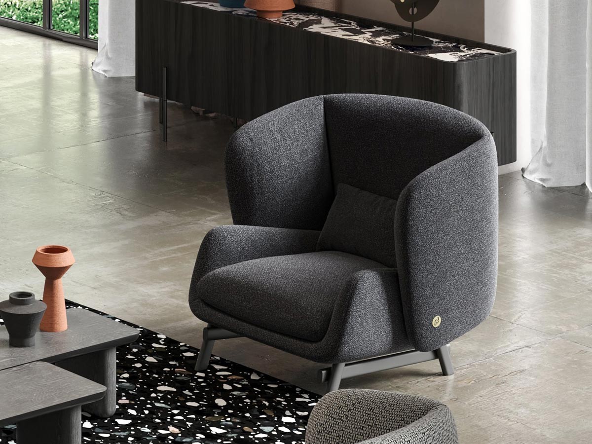 Diseño contemporáneo, formas suaves y máximo confort. Estas son las tres características principales del sillón Coquille de Liu Jo Living. Este sillón, que se presentó en el Salone del Mobile 2023 junto con toda la nueva colección Liu Jo Living, es una pequeña obra maestra del diseño con un gran impacto visual. El respaldo envolvente y el asiento tapizado recuerdan la forma de una concha, de la que toma su nombre. Todo ello se apoya en una fina estructura metálica que realza aún más su suave geometría.
