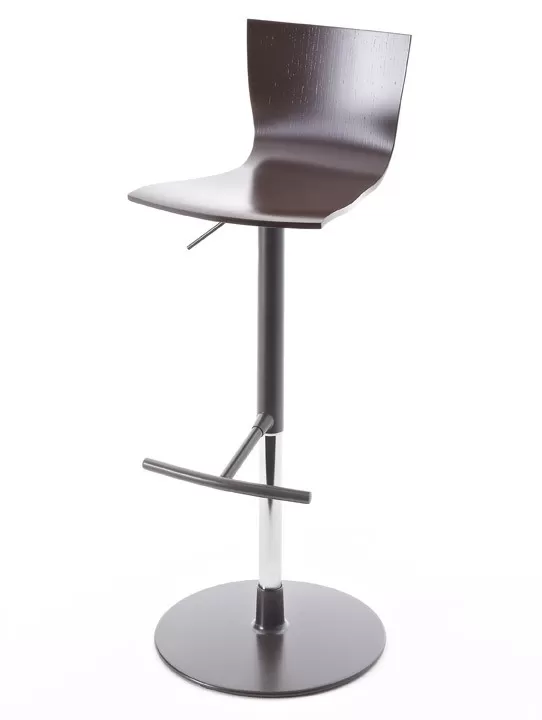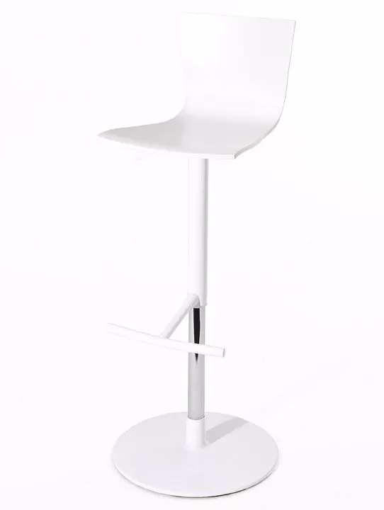 Taburete de cadera de Fausto Di Martino para Colico Design es una silla alta de metacrilato con reposapiés y con altura regulable desde un mínimo de 53 cm hasta un máximo de 80 cm.