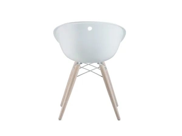 La silla Gliss Wood, diseñada por Claudio Dondoli y Marco Pocci para Pedrali, está dedicada a aquellos que quieren relajarse sin renunciar a la funcionalidad y la elegancia. Carcasa de tecnopolímero moldeada por inyección, las patas son de madera de fresno. La silla es muy resistente y cómoda. La madera de fresno puede ser blanqueada o teñida de negro, el tecnopolímero puede ser blanco o arena.
