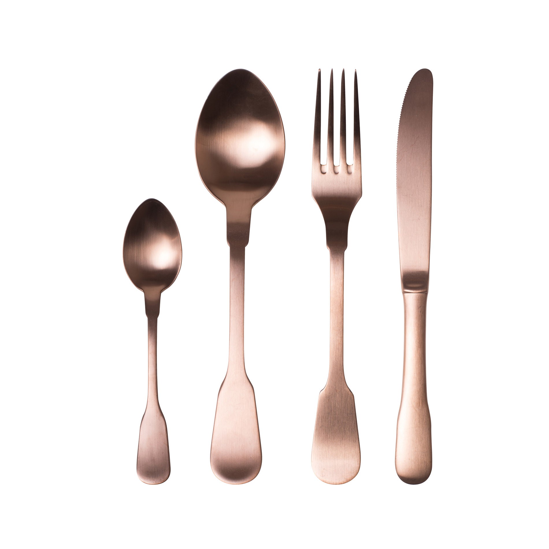Classic de Bitossi es un conjunto de 24 piezas. cubiertos de acero inoxidable. Practicidad y elegancia se combinan en este clásico conjunto de cubiertos con un acabado único. Disponible con acabado mate de acero, oro, negro y cobre.