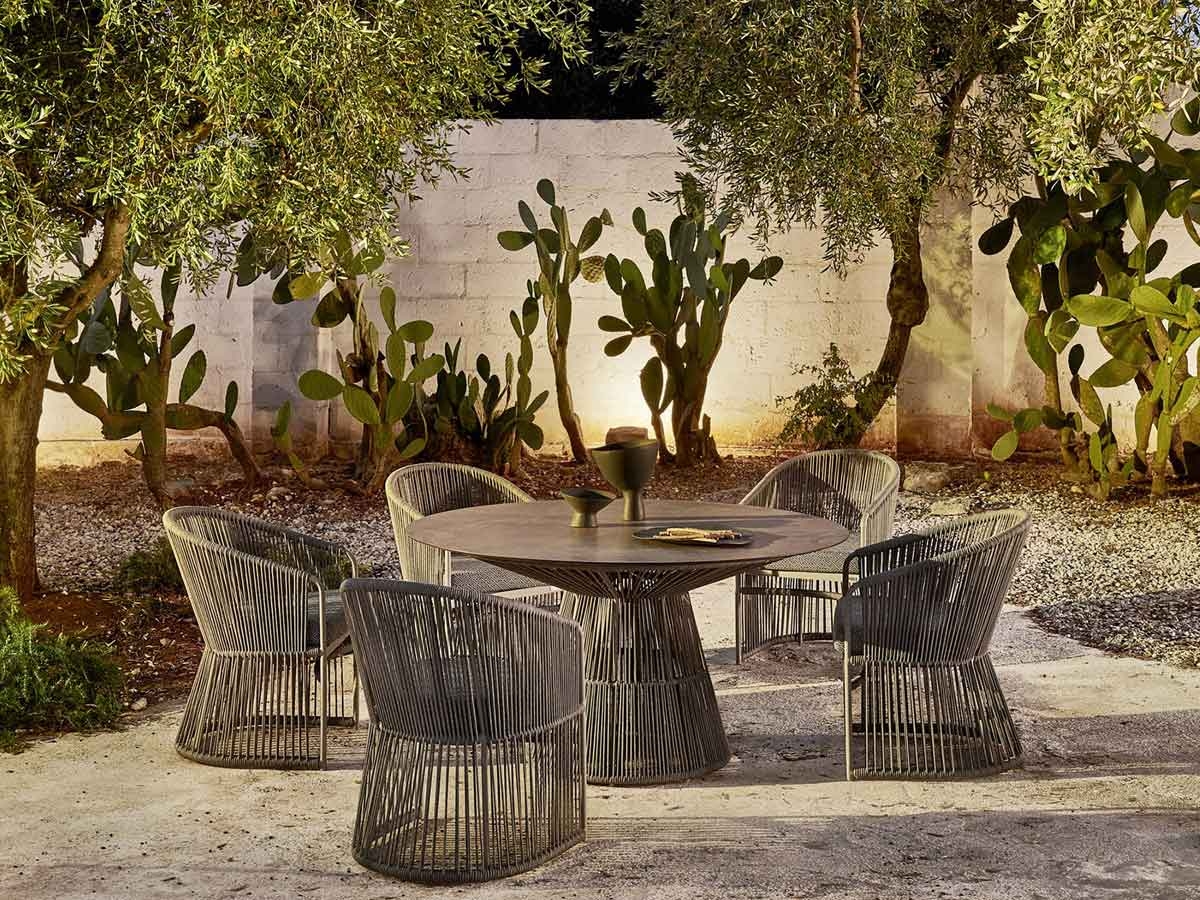 Ce meuble, à la fois unique et créatif, rappelle la forme d'un sablier, caractérisée par un tissage de cordes en fibres synthétiques. Rendez votre espace extérieur encore plus attrayant avec la table Tibidabo, le partenaire parfait de ce fauteuil, créant une atmosphère de paix et de relaxation.