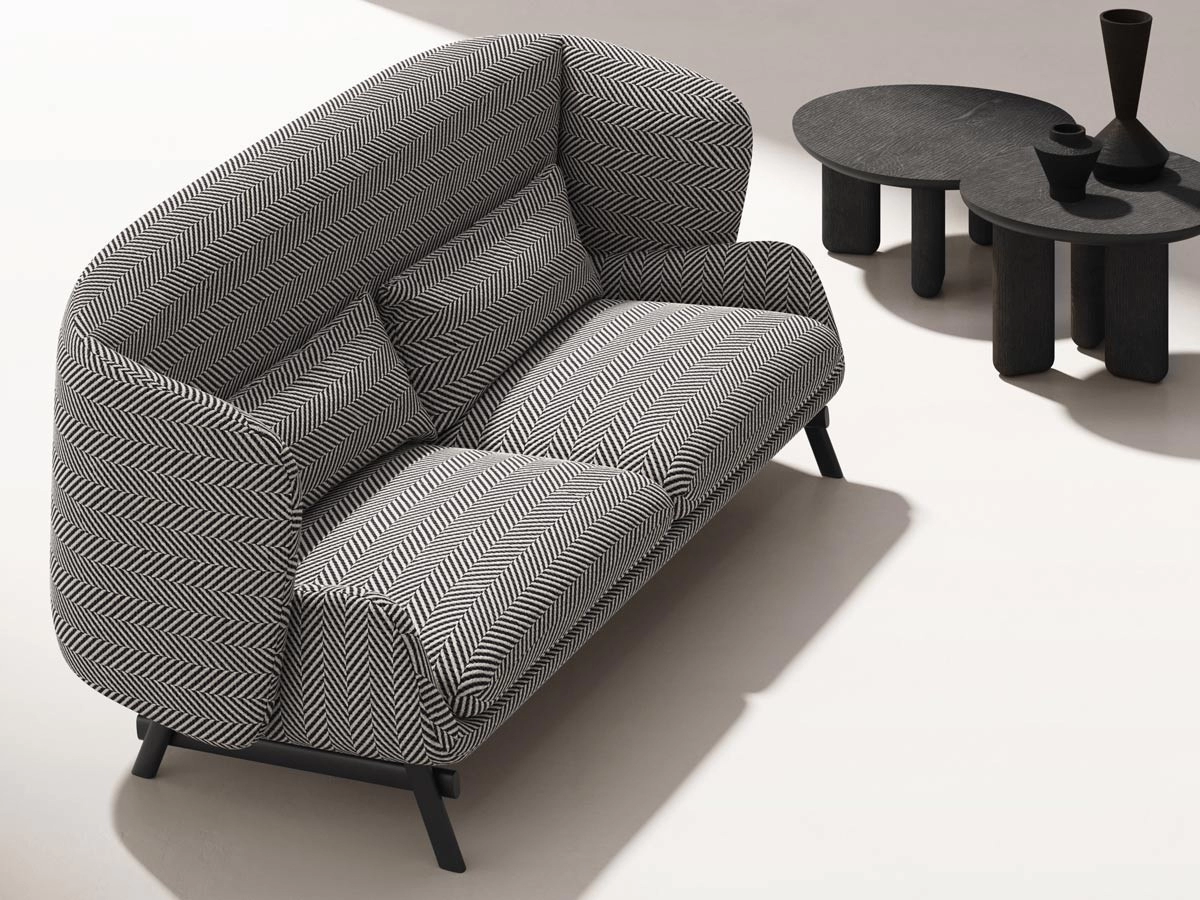Le canapé Coquille de Liu Jo Living est entièrement déhoussable, ce qui permet de "changer de vêtements" et souligne le concept de design durable, essentiel pour une entreprise 100% italienne.