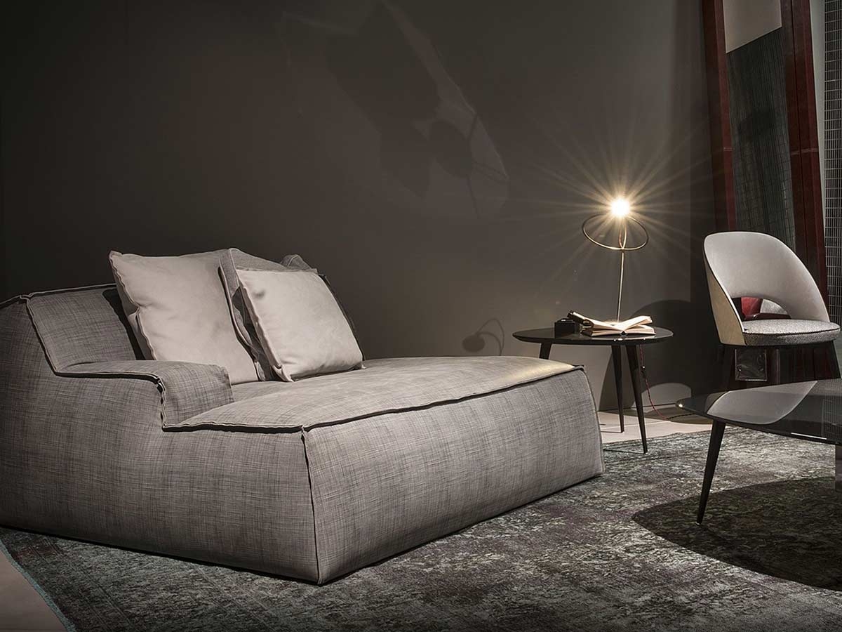 The Damasco sofa by Baxter detaches from the traditional image of leather upholstery through. It is the simbol of an extreme simplification of shapes and only points to a youthful design. Deconstructed and oversize, it is comfortable and enveloping. The upholstery sewed with the typical raw cut remembers the old handicraft tradition of the company.