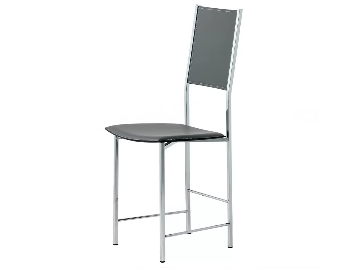Alessia chair, by Cà Nova Design for Cattelan Italia, with slender and simple steel structure combined with leather seat and back.