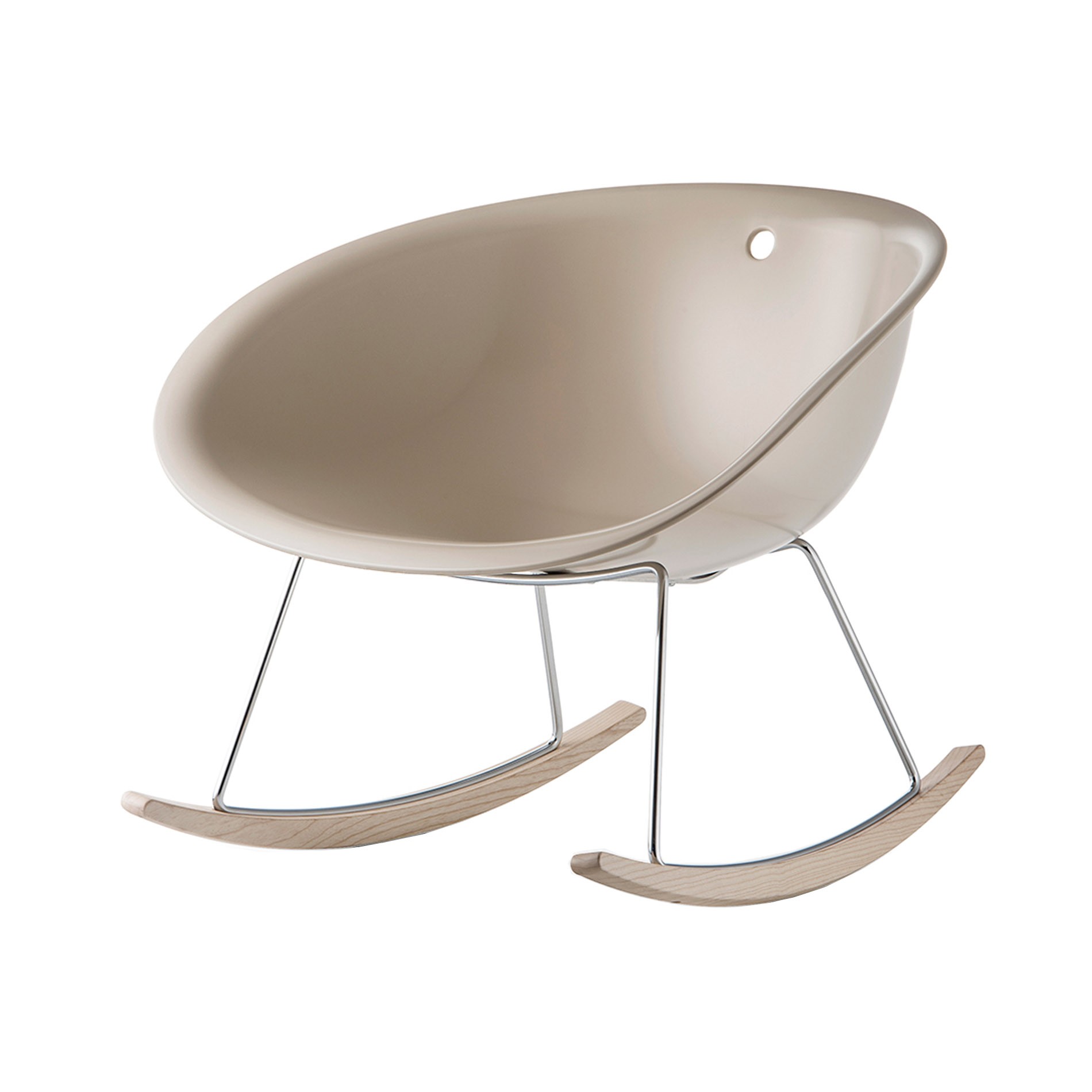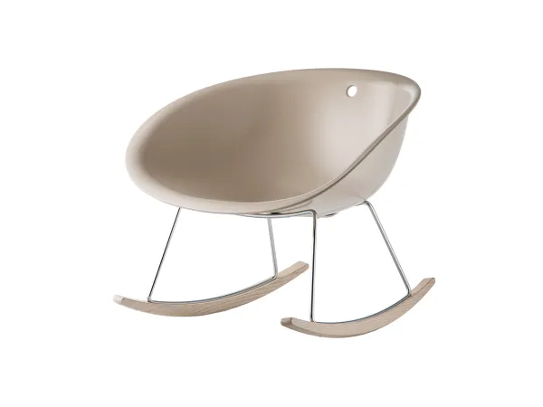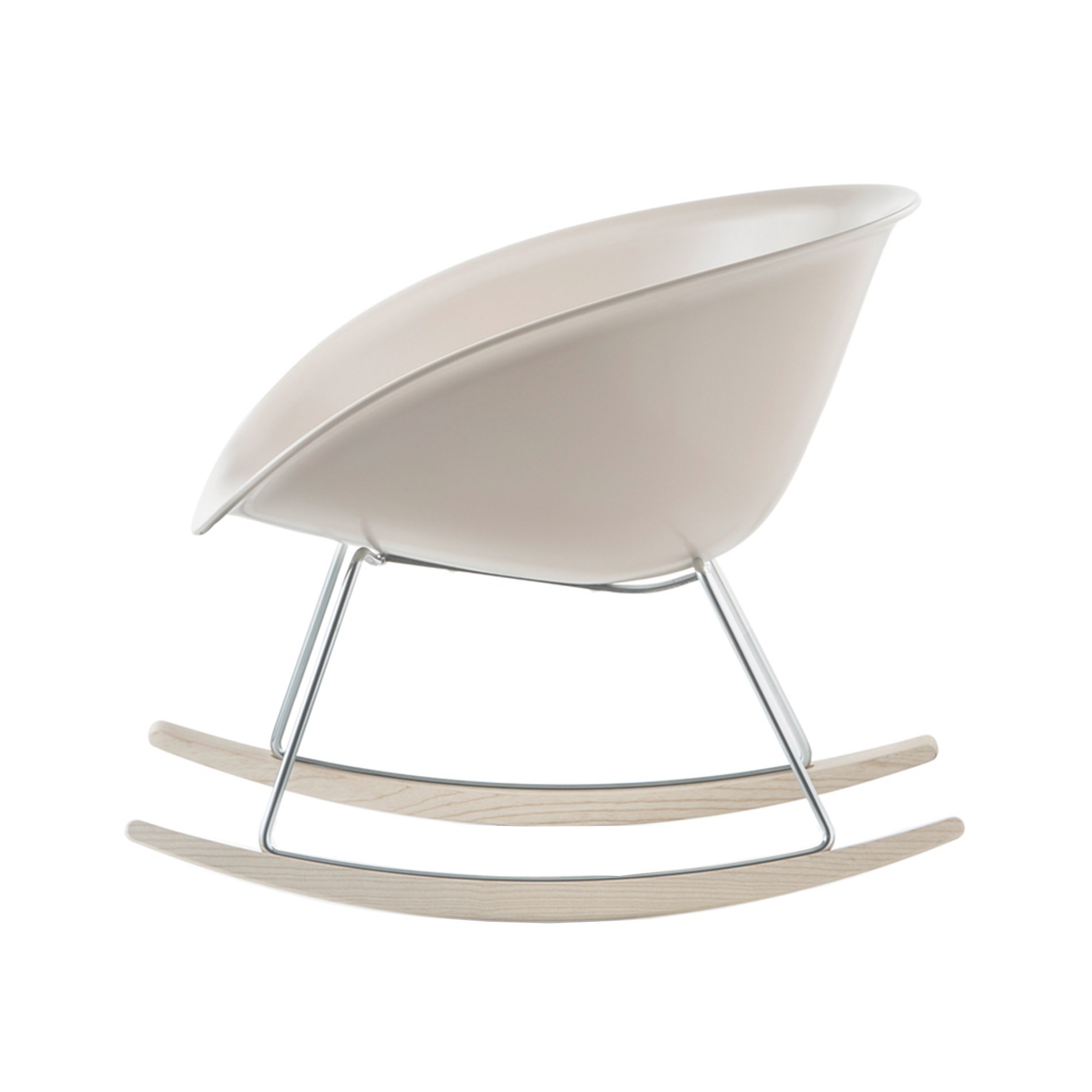 Gliss Swing rocking chair, designed by Claudio Dondoli and Marco Pocci for Pedrali, is a departure from the idea starts from the idea of an extremely comfortable chair, particular and very resistant. The injection moulded technopolymer shell can be upholstered with a removable cover. Two blocks in ash wood are assembled on the steel rod frame. Available in different colors, the perfect seat for indoor or outdoor use.