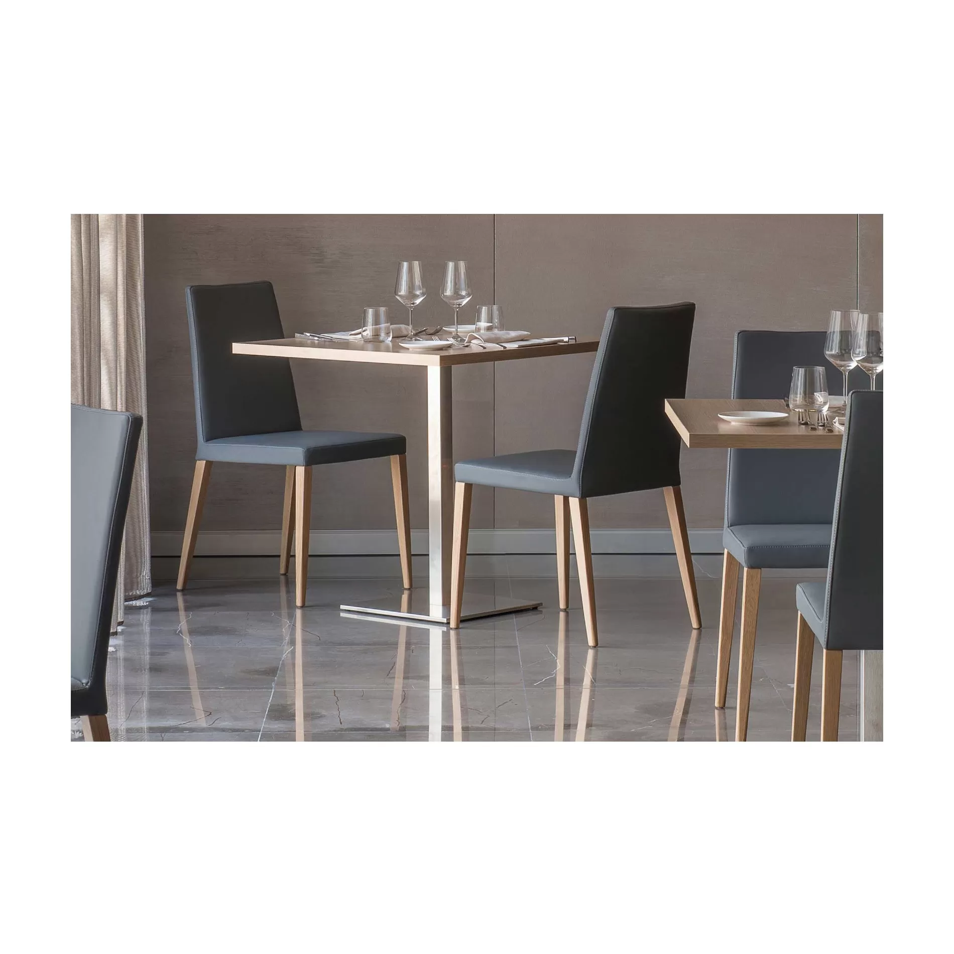 Dress 531 Chair by Pedrali is an upholstered chair with high back and legs in oak wood. The upholstery can be fabric, leather or eco leather. Refined and comfortable, this chair has a minimal design and a timeless style. The two main features of Dress chair are: the slenderness of the legs, which are in square section taper down to become round, and the chair lightness surprise while in contrast to the exceptional strength that make them suitable for public areas. The upholstery, available in different colors and materials, make it highly customizable.