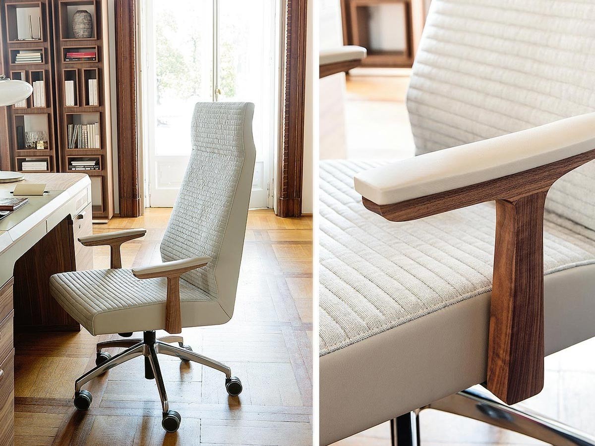 Le fauteuil pivotant Elis de Porada est un meuble original et confortable, parfait pour votre bureau. Caractérisée par un haut niveau de confort et un design élégant, la chaise Elis permet des mouvements à 360 degrés, ce qui la rend appropriée aussi bien comme chaise de bureau pour la maison que pour un bureau de direction. Née du génie créatif d'Umberto Asnago, la chaise Elis garantira un confort absolu et apportera de la sophistication à n'importe quel environnement.