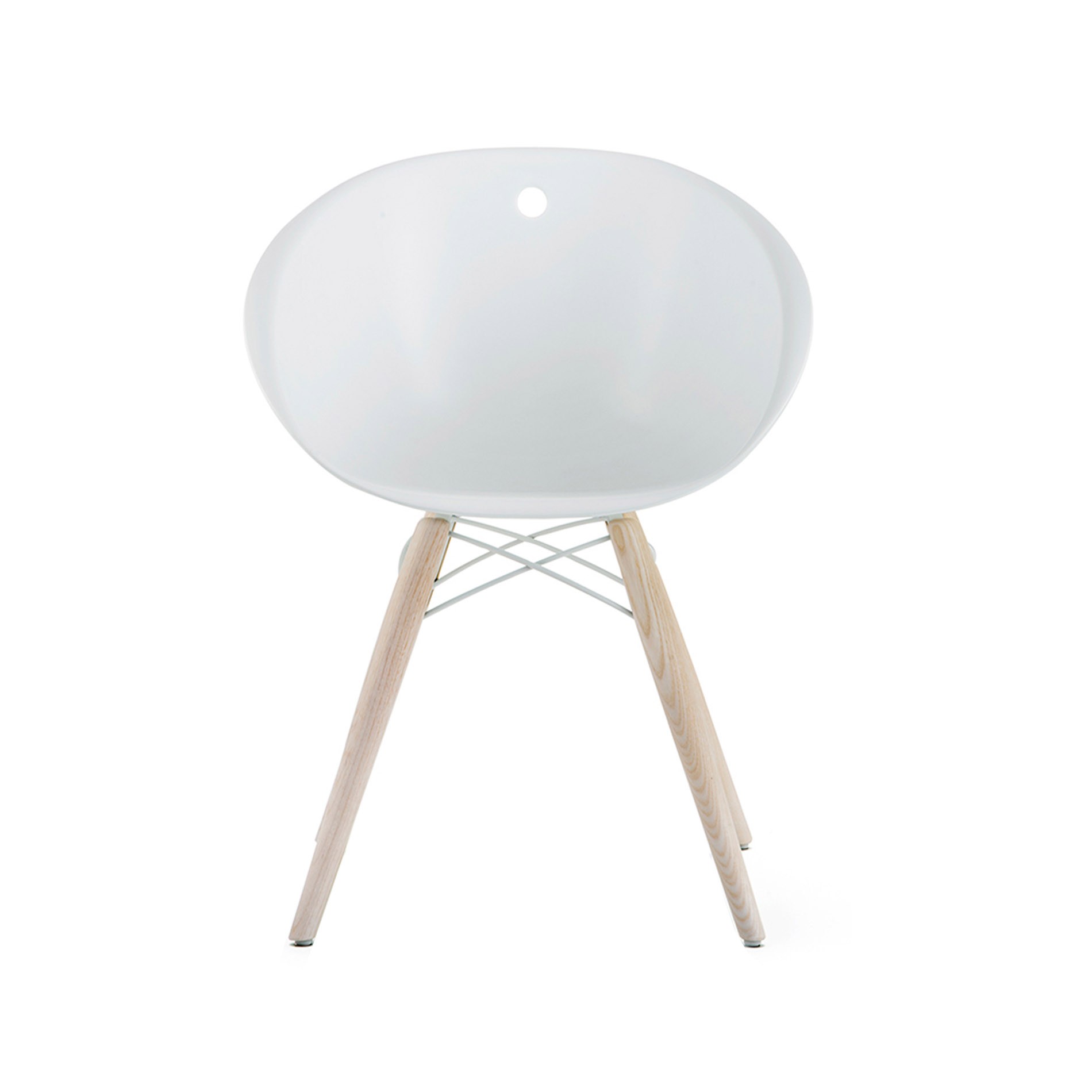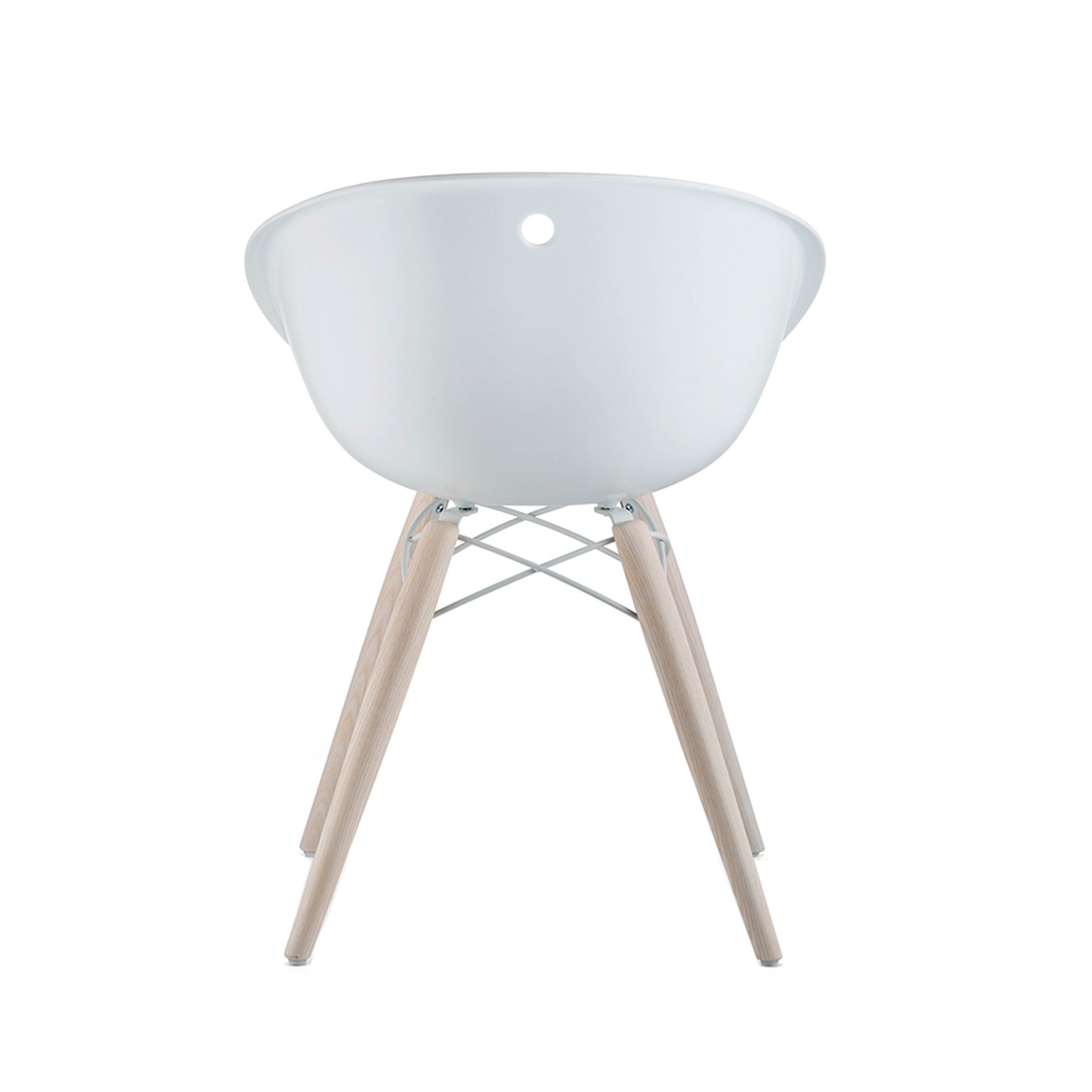 Gliss Wood chair, designed by Claudio Dondoli e Marco Pocci for Pedrali, is dedicated to those who want to relax without renouncing at functionality and elegance. Injection moulded technopolymer shell, the legs are in ash timber. The chair is so resistant and comfortable. The ash wood can be bleached or black stained, the tecnopolymer can be white or sand.