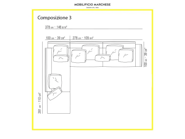 - 1 élément avec accoudoir bas de dimension 278x100 cm;