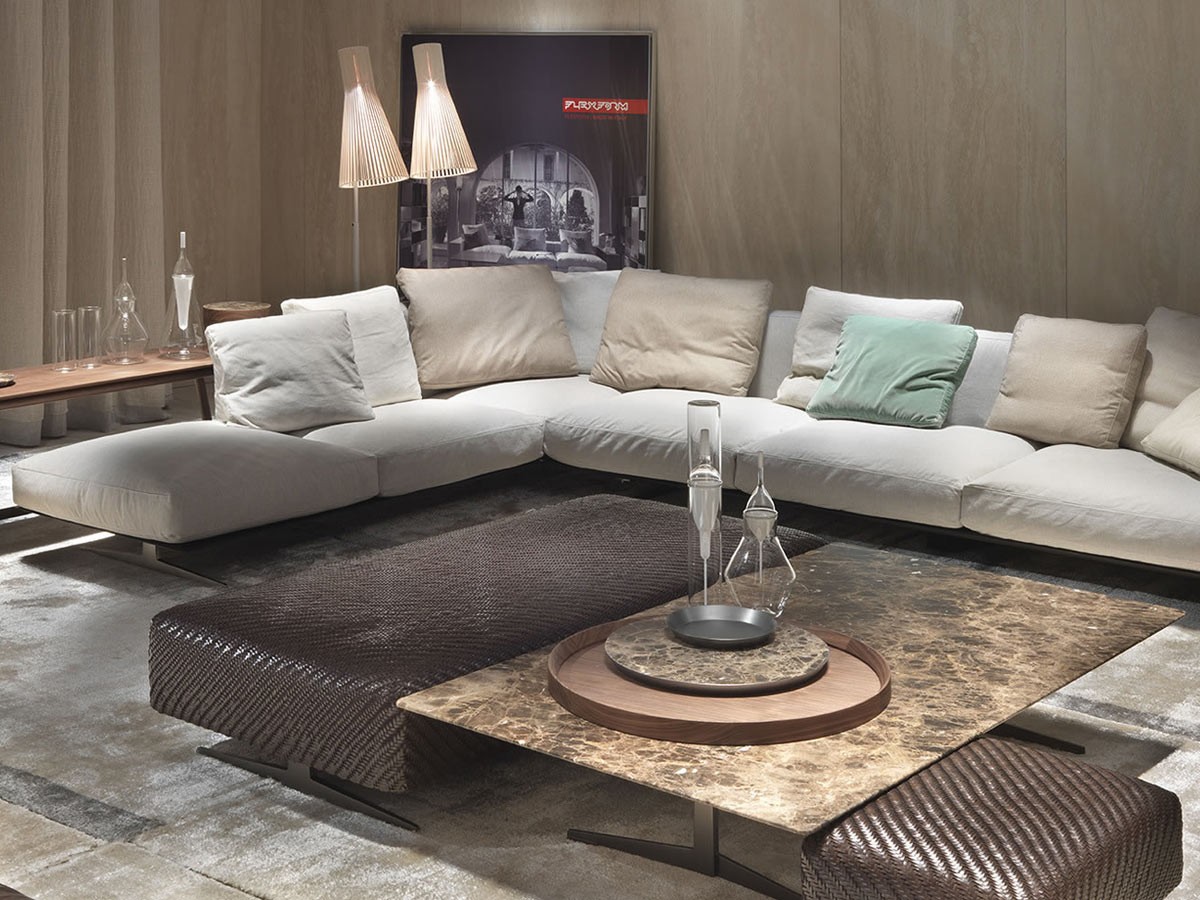 Le canapé Soft Dream de Flexform est d'une extrême légèreté visuelle, grâce également aux pieds élancés qui affinent la silhouette et toute la ligne du canapé. L'assise douce et profonde repose sur un fin plateau métallique recouvert de cuir, car chaque détail est soigné avec passion.