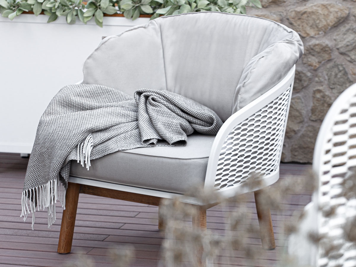 Cyrano est l'un des derniers fauteuils arrivés chez Atmosphera. Il est un exemple classique de la manière dont le confort et la durabilité peuvent coexister dans un même meuble. Grâce à ses coussins d'assise et de dossier moelleux, le fauteuil Cyrano est confortable et douillet. En même temps, la structure en aluminium et en bois le rend robuste et conçu pour durer. Commencez à meubler vos espaces extérieurs avec style, ainsi que vos espaces contractuels tels que les hôtels, les bars, les centres de villégiature et les restaurants.