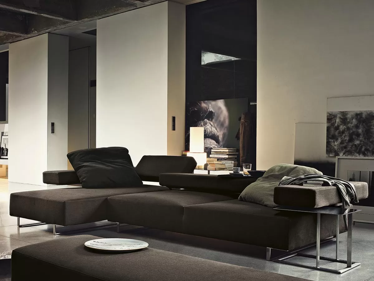 As a registered model, Loft is an extremely innovative seating system, which offers a superior degree of comfort and enables the entire sofa concept to be experienced in an extremely personal manner. By means of a simple movement, the mechanism permits two different seat depths. Another mechanism permits to adjust the back from horizontal to vertical, through a number of middle positions. In this way Loft becomes more than a sofa, it turns into a real open space, a multipurpose platform for relaxation.