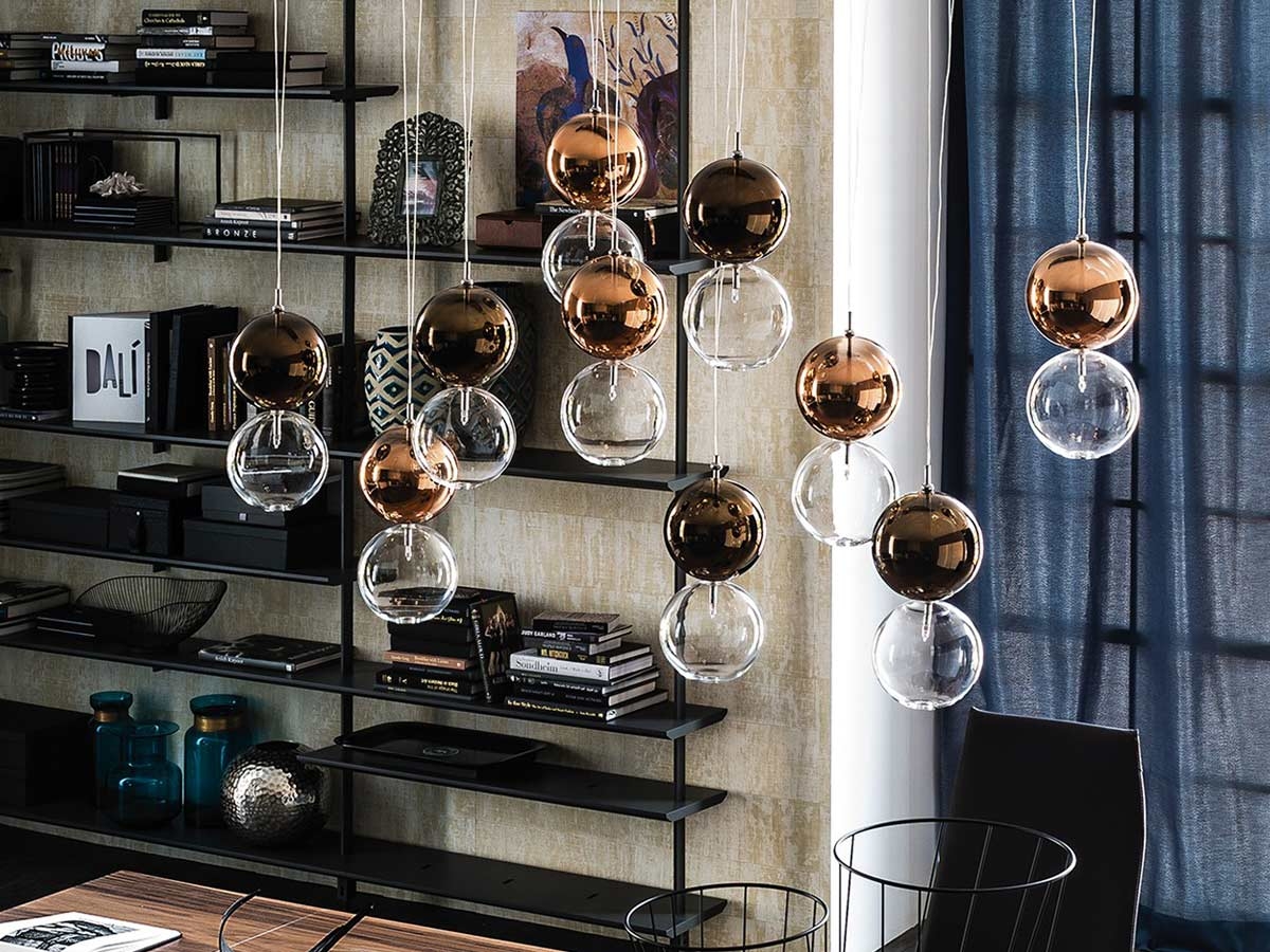 Apollo by Cattelan is a suspension lamp with a sophisticated design, modern and elegant. Lampshade made of two borosilicate glass spheres in transparent glass or painted chrome, copper, bronze. Available in three different combinations. Bulbs included.