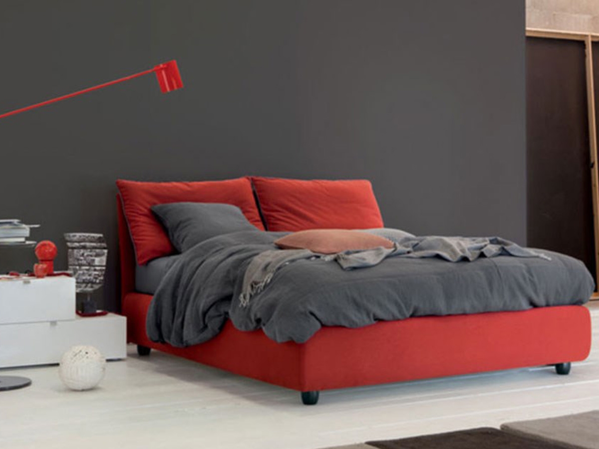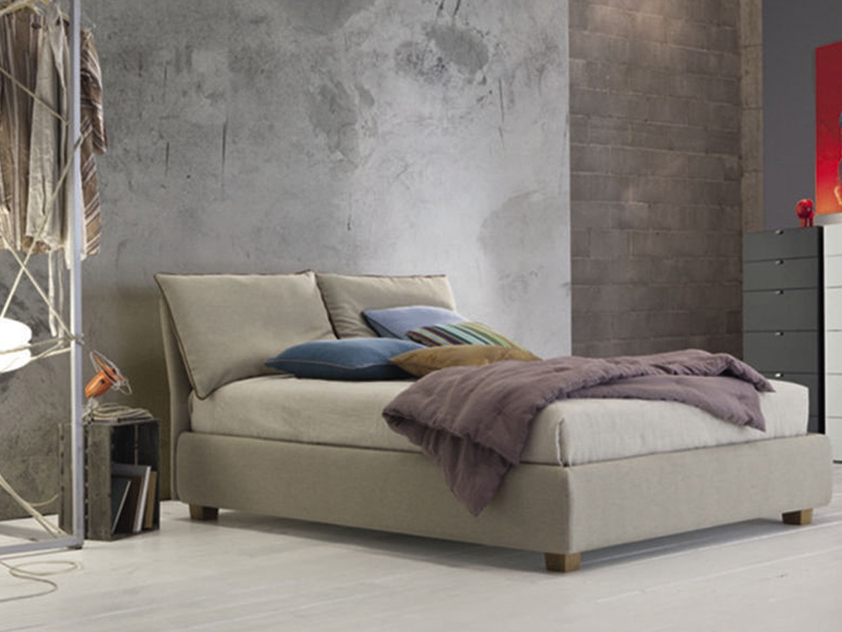 Blanca by Twils is a fabric double bed. Thanks to the minimal and simple design, Blanca is the perfect solution for a modern bedroom. Two fluffy overflowing pillows lean over a solid structure, with visible stitching. The right place to sleep, but even meditate and dream. Blanca is available in different fabrics and sizes. Under request, it is possible to have it also with the storage. Mattress not included.