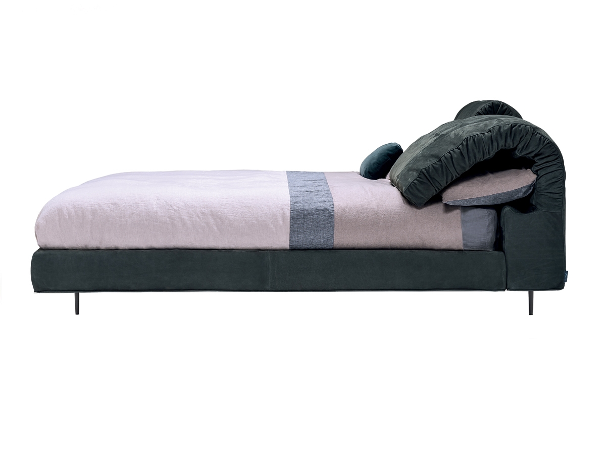 Crazy Dream by Arketipo is a double bed with a soft-chic design. It is supplied with an adjustable headboard that allows great comfort and elegant multifunctionality. The pillow can be hidden behind the headboard. The soft folds of the headboard profile are a decorative feature.