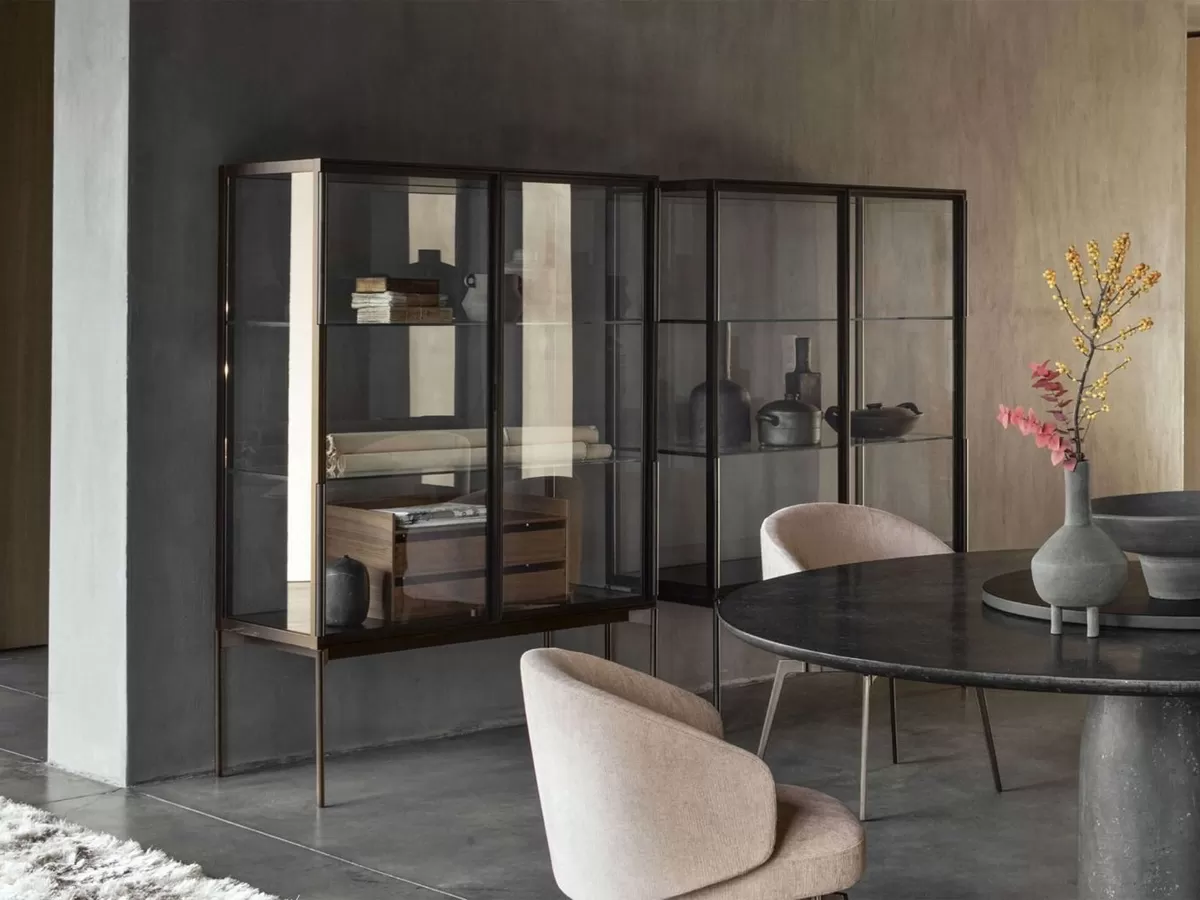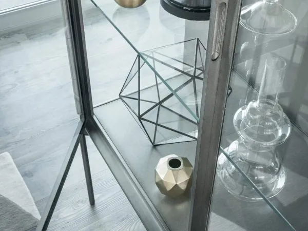 Le verre extra-clair dont il est composé a été spécialement choisi par le designer pour mettre davantage en valeur le contenu exposé, en dématérialisant les murs et les étagères à l'intérieur du meuble, permettant ainsi une vue à 360°.