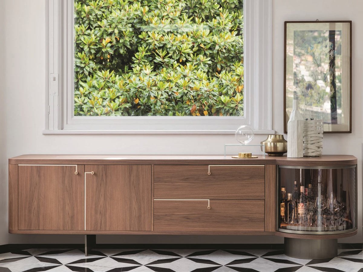 Le buffet Rondò de Porada est l'une des créations du designer Umberto Asnago, idéal pour enrichir votre espace de vie avec des meubles design de luxe. Rondò se caractérise par un design minimal aux lignes épurées et essentielles. Ce qui fait le charme et l'élégance du buffet Rondò, ce sont les quatre décorations réalisées grâce à la technique de l'incrustation du bois.