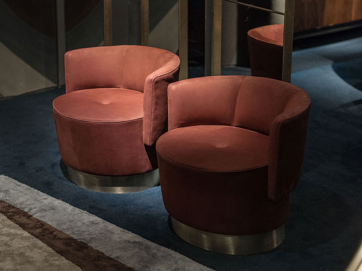 From the pure form of a circle comes an element of furniture with a sophisticated and refined design. The Anais armchair by Baxter is particularly available for various and dynamic environments. Wooden structure. The base, covered in brass, is available in three metallic finishes. Made with the best Italian leathers. It is possible to have it in different colors and leathers. Ask for more information.