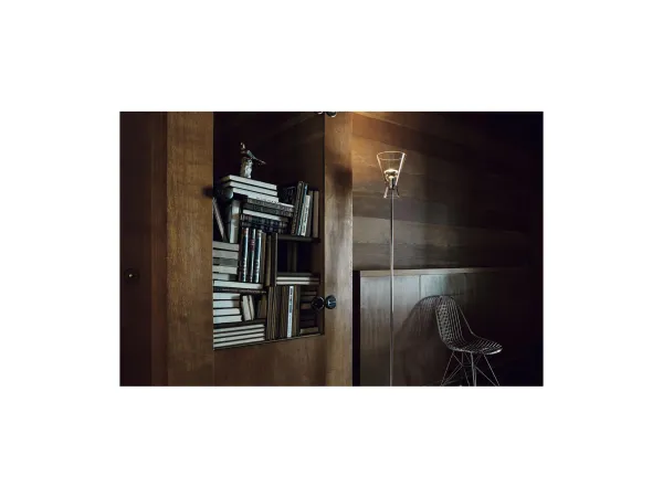 Memory R1 by De Majo is a floor lamp with a minimal and elegant design. The notion of balance is prominent in this unique element of furniture: a glass shade resting delicately on a metal frame. Available in different finishes.