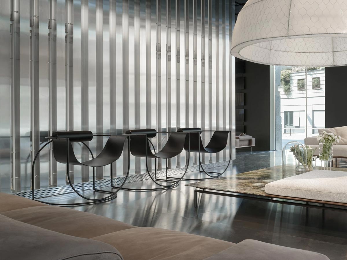 Un peu meuble, un peu sculpture, intimiste et chic observatoire sur le monde, Lemni de Living Divani révèle l'envie de s'affranchir des poids superflus et de s'envoler dans les airs, enchanteur par sa vitalité graphique. Un siège suspendu, avec un équilibre parfait entre la structure métallique et le siège en cuir de selle, également du coussin de dossier. Laissez-vous conquérir par ce chef-d'œuvre de design d'intérieur de Marco Lavit.