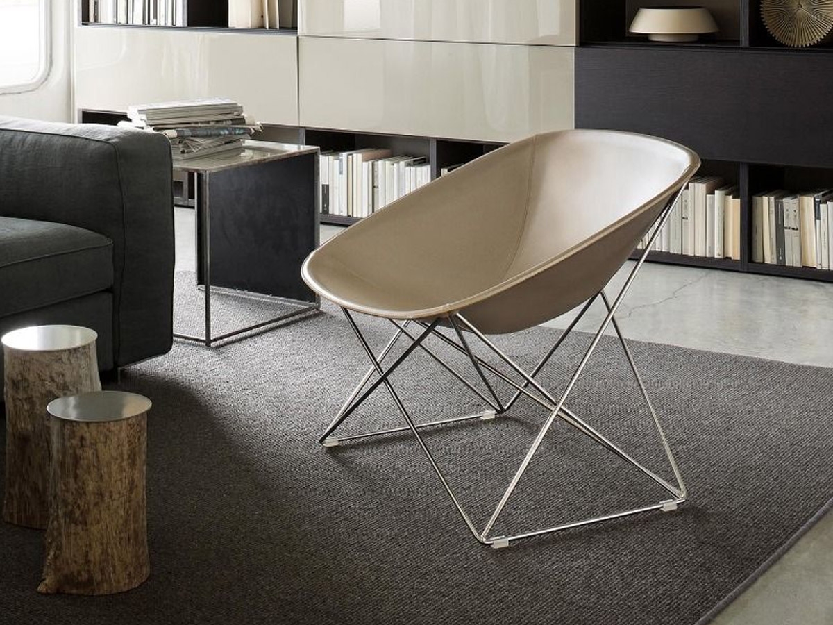 Fruit du génie créatif de Ferruccio Laviani, le fauteuil Popsi de Lema se caractérise par une assise raffinée, tant au niveau du design que de l'utilisation des matériaux. Son design et ses matériaux sont élégants et raffinés : la base est composée de tiges métalliques entrelacées qui créent une toile d'araignée ; la coque de l'assise en forme de baignoire, en revanche, est recouverte de cuir. Les coutures esthétiques soignées, qui témoignent de l'engagement de Lema dans la confection, complètent ce design raffiné.