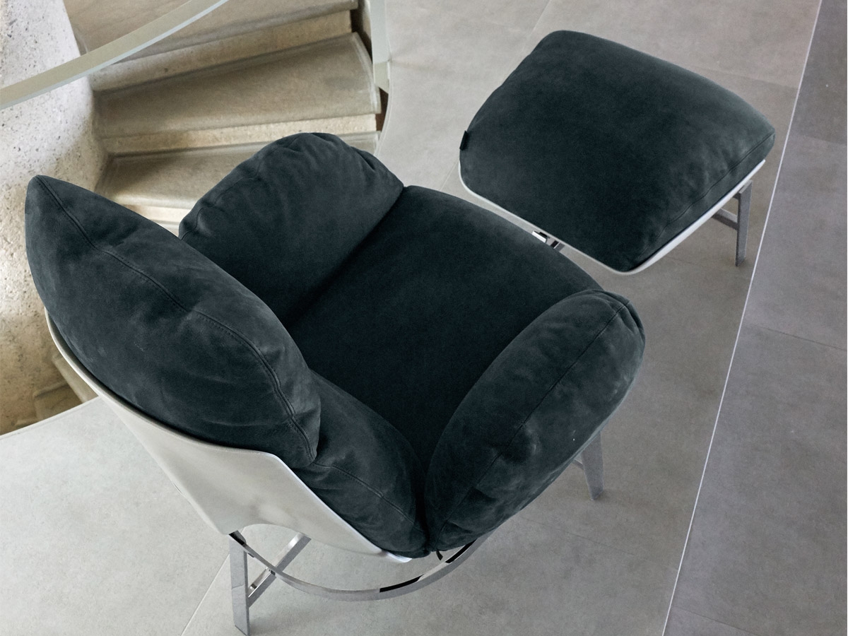 La légèreté unique est l'essence du fauteuil Jupiter Lite. L'équilibre parfait entre la forme et le goût d'un style intemporel font de Jupiter un élément clé de l'espace de vie. Le fauteuil Jupiter Lite a une structure en arc métallique plié qui maintient et soutient la coque en polyuréthane. La coque peut également être revêtue de cuir Pelle Leonardo, dans toutes ses couleurs.