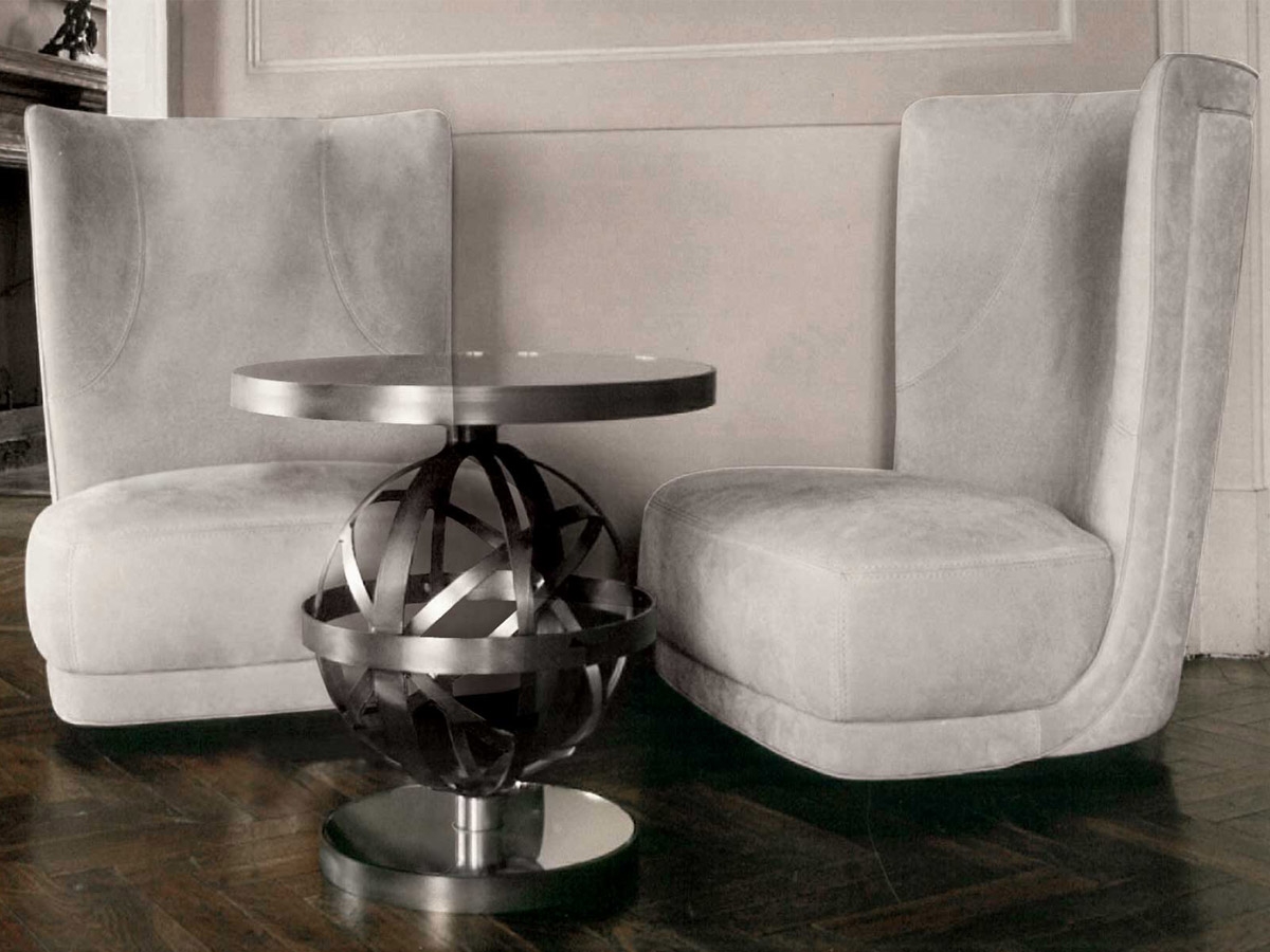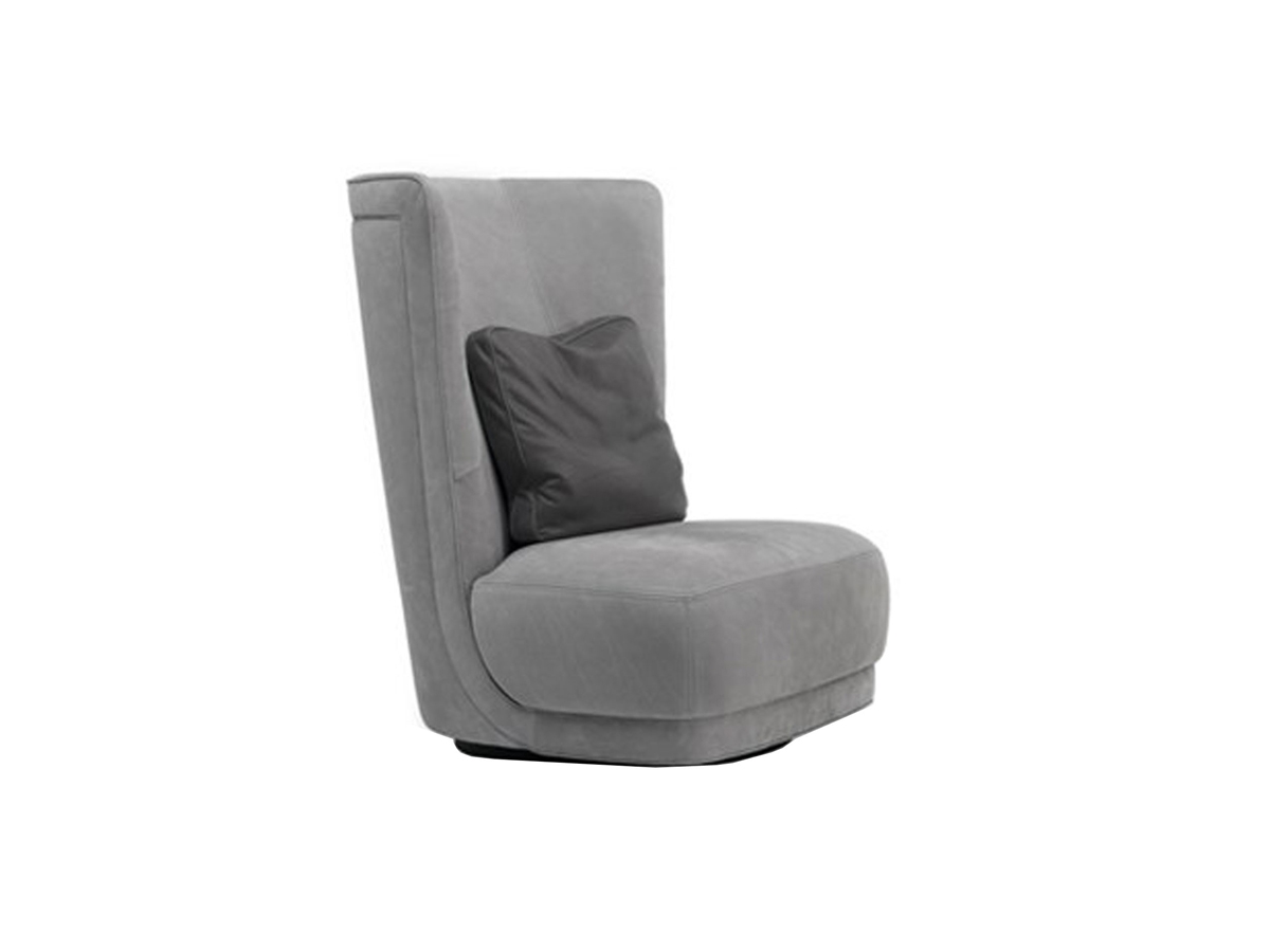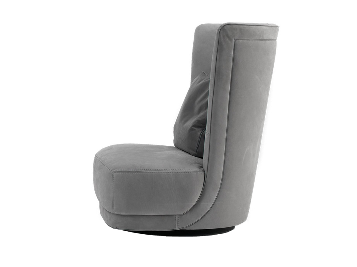 Etienne Bergère by Baxter is an elegant and comfortable revolving armchair. It steps out from the canons of the classical seat thanks to a design based on circular lines. The visible base in steel gives it further originality makes it a unique element of furniture. Covered in leather. Available in different colors.