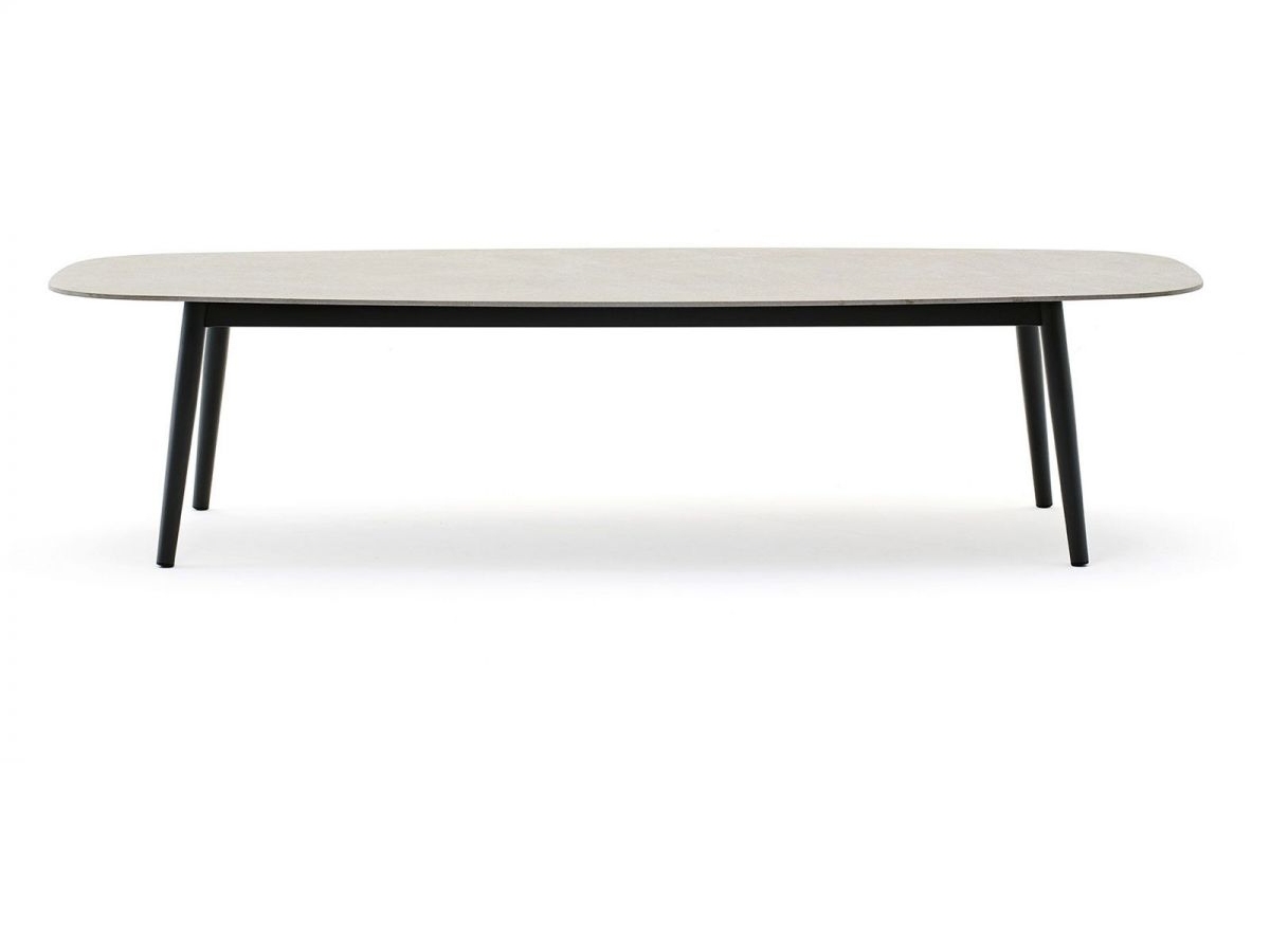 Ellisse a été conçu pour enrichir votre espace extérieur, même dans les zones marines, et c'est pourquoi sa structure est résistante aux intempéries et aux rayons du soleil. Il peut être personnalisé selon vos préférences : il est disponible avec un plan rectangulaire ou ovale, dans différentes dimensions, y compris la version basse ; vous pouvez également choisir la couleur du plan et les matériaux pour le cadre et les pieds.