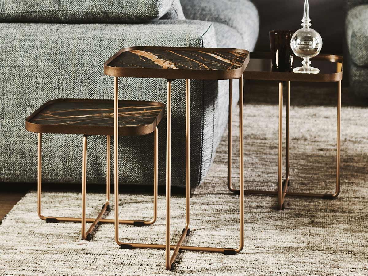 Si vous recherchez une table basse à l'effet unique qui puisse ajouter une touche d'élégance à votre salon, la Benny Keramik de Cattelan Italia est la solution idéale. Créée par le Studio Kronos, Benny Keramik fait partie d'une famille de tables basses modernes qui se caractérisent par la forme en X des pieds, qui permet même à plusieurs tables basses de se superposer pour créer un effet incroyable. Le design linéaire et minimaliste met en valeur l'élégance des matériaux précieux qui la composent, avec leurs nuances et leurs effets.