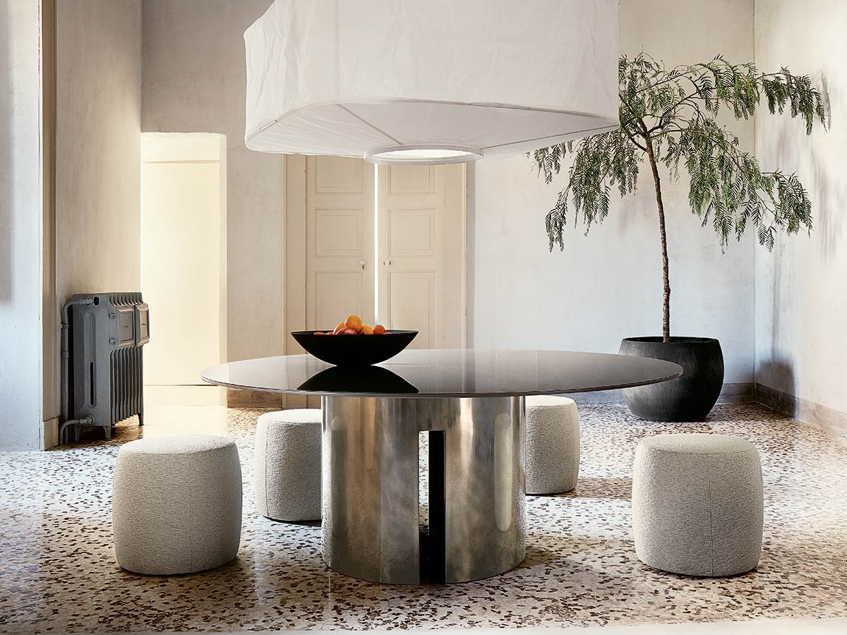 Idéale pour être placée au centre de la pièce, la table Gong de Meridiani deviendra la star de votre salle à manger grâce à son aspect remarquable et à son fort impact visuel.