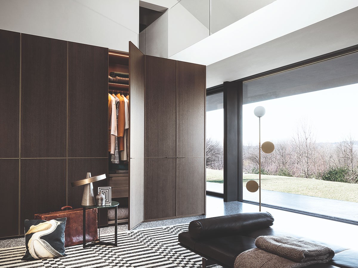 L’armadio Kyn di Lema è una soluzione su misura dal forte carattere architettonico, capace di interpretare con eleganza gli interni contemporanei. Disegnato da David Lopez Quincoces, si distingue per le ante battenti scandite da un raffinato profilo perimetrale e da maniglie integrate che ne esaltano la pulizia formale. La vasta gamma di finiture valorizza i materiali ricercati e i dettagli di alta qualità, offrendo un equilibrio perfetto tra estetica e funzionalità.