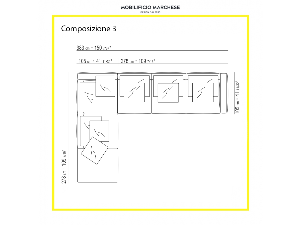 - 1 elemento terminale di dimensioni 278x105 cm;