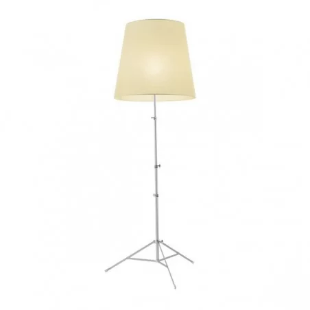 Gilda lamp, disegnata da Enrico Franzolini per Pallucco, è una lampada da terra montata su un cavalletto estensibile e caratterizzata da un ampio diffusore in carta pergamena sintetica.