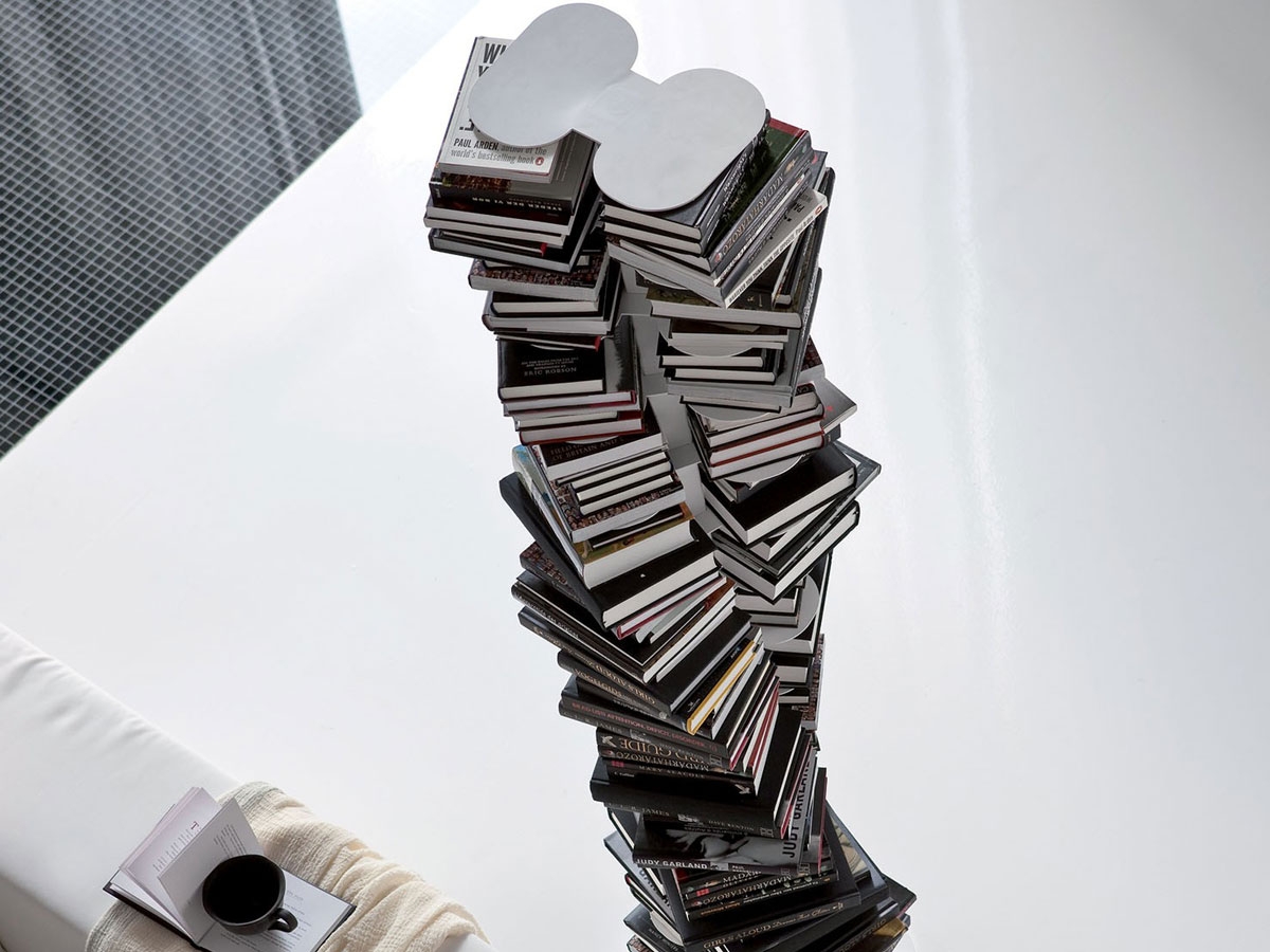 DNA è una libreria autoportante di Cattelan dal design moderno e contemporaneo. La sua particolare forma, realizzata con struttura a 13 ripiani fissi in acciaio, richiama la struttura a doppia elica del DNA. Disponibile in bianco e nero.