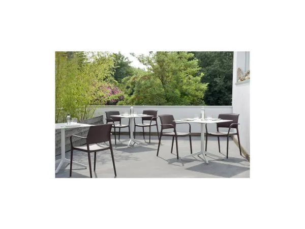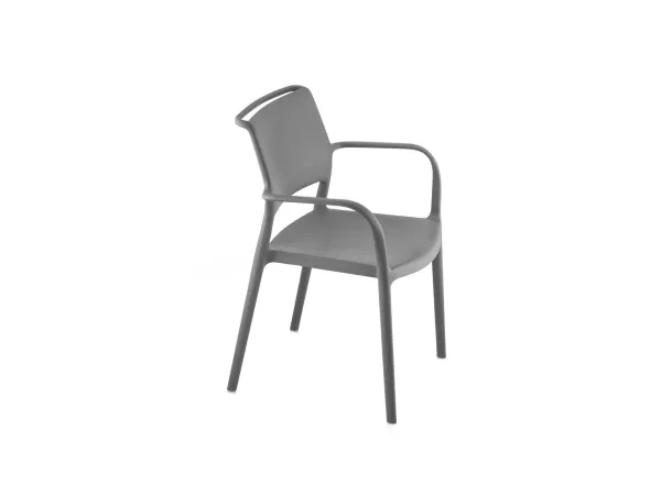 Ara è una poltrona in polipropilene caricato con fibra di vetro. Disegnata da Jorge Pensi Design Studio, ha uno schienale dalla struttura particolare che forma nella parte alta una grande maniglia che ne facilita il sollevamento e lo spostamento. Grazie alla forma affusolata delle gambe appare leggera ed elegante, pur essendo robusta e indeformabile. Un prodotto dal carattere distintivo. Impilabile. Adatta sia per indoor che outdoor.