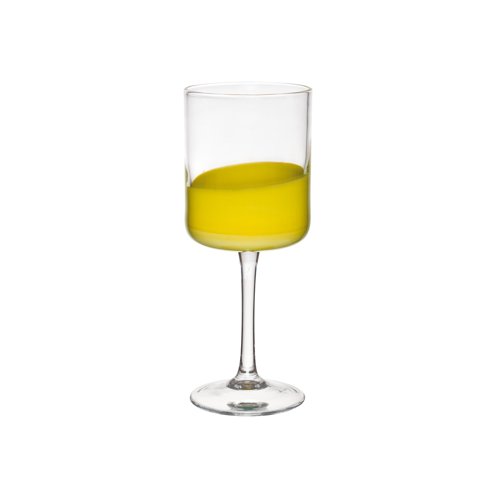 Spot è un set di sei calici in vetro trasparente con base colorata. Capienti e dal gusto irregolare e materico, sono adatti alla lavastoviglie. Disponibili nei colori giallo, celeste, turchese, grigio, rosso e bianco.