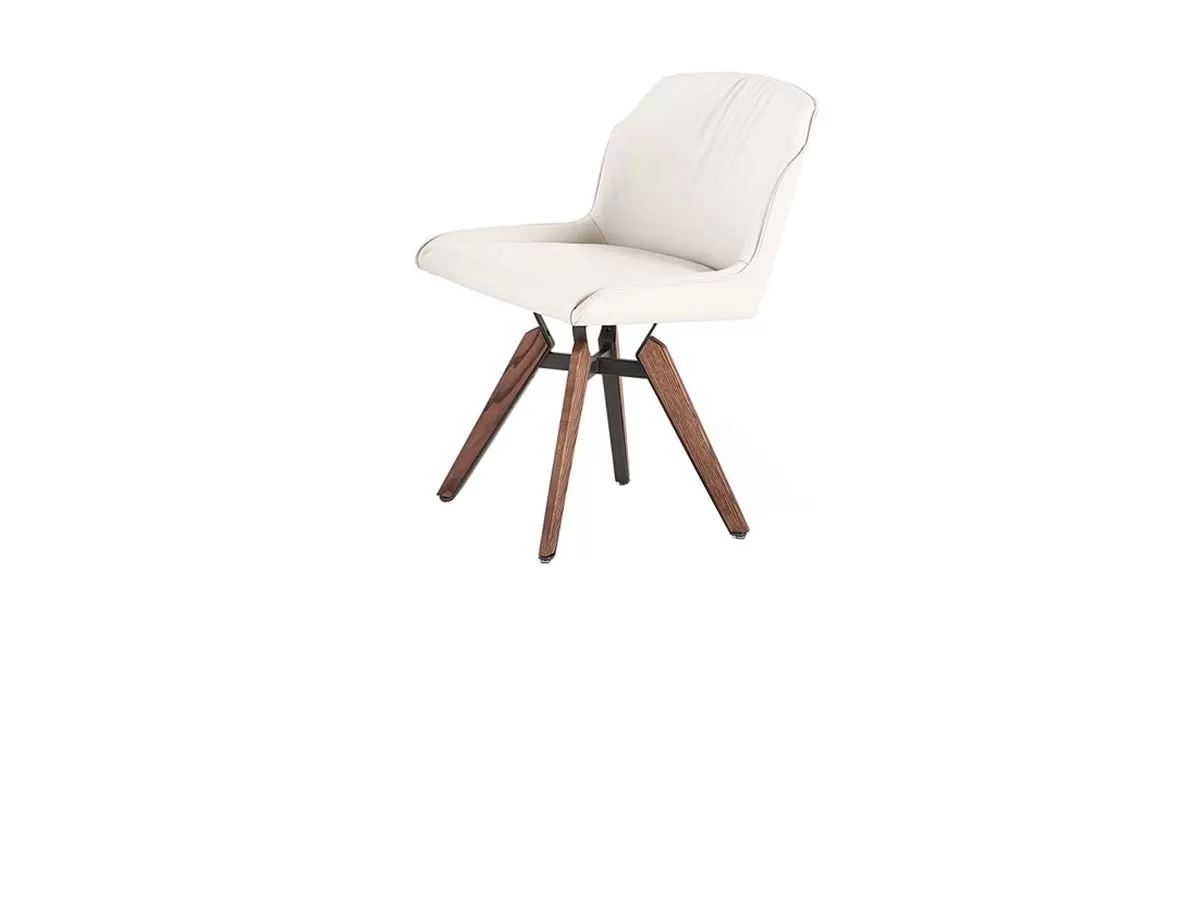 Sedia Tyler, disegnata da Paolo Cattelan per Cattelan Italia, con struttura in acciaio, piedi in legno e seduta rivestita in pelle ecologica. Dalle linee eleganti e un po´ retrò, è resa originale sia dalla linea dello schienale che dalla forma delle sue gambe.