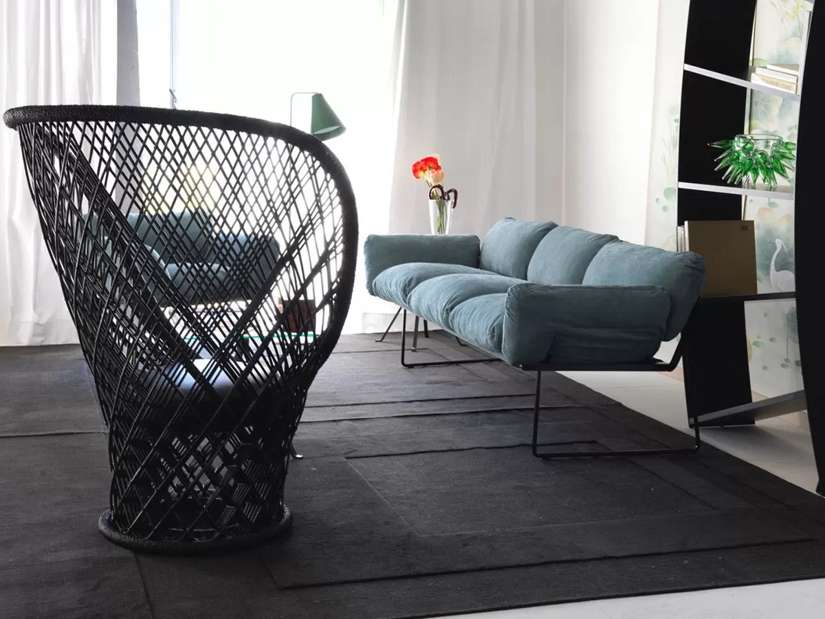 Pavo Real, disegnata da Patricia Urquiola per Driade (2010), è una poltrona in midollino solo per uso interno. Struttura in acciaio, cuscino di seduta con imbottitura e rivestimento in pelle nera.