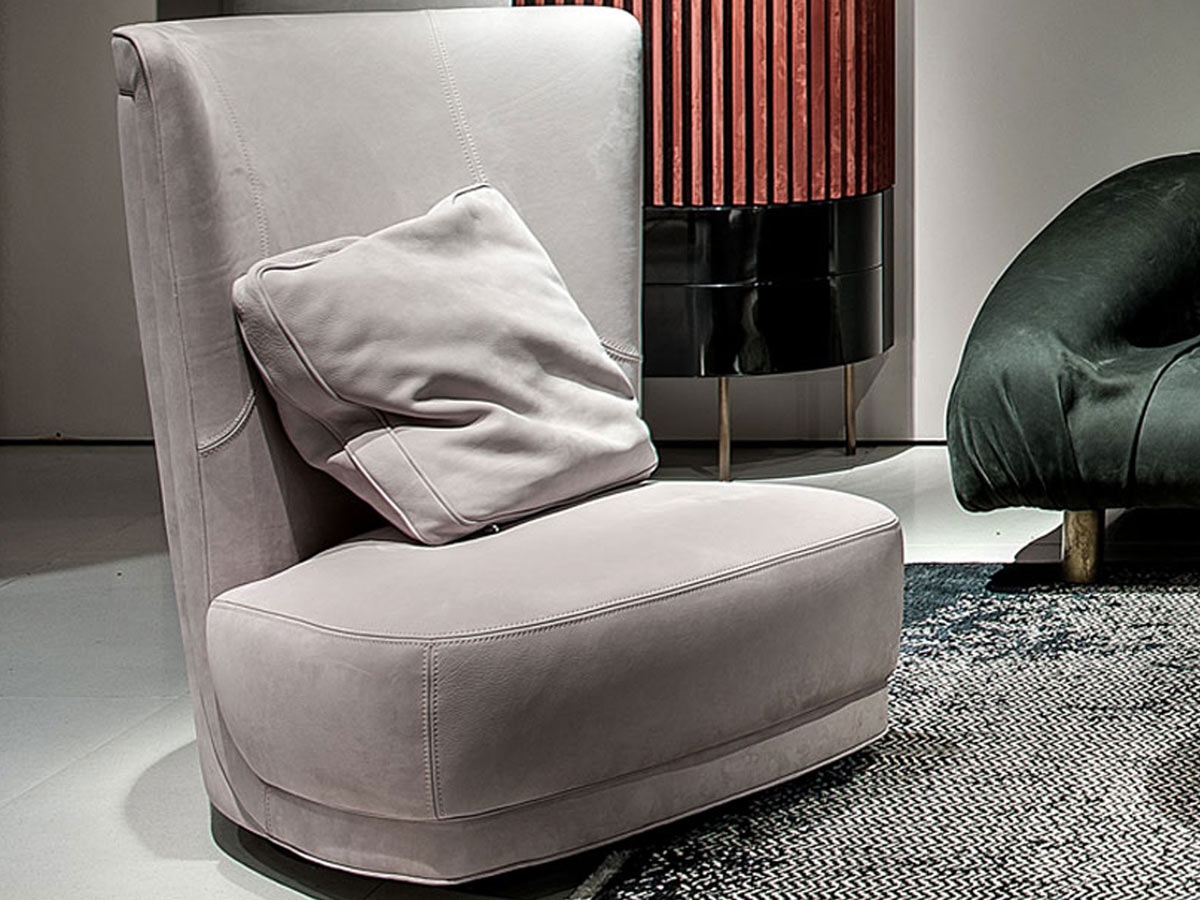 Etienne Bergère di Baxter è una poltrona girevole caratterizzata da un design unico ed originale, fatto interamente da linee circolari. Avvolgente ed accogliente, questa poltrona esce dai canoni della seduta classica anche grazie alla particolare base a vista in acciaio. Rivestita in pelle. Disponibile in diversi colori.