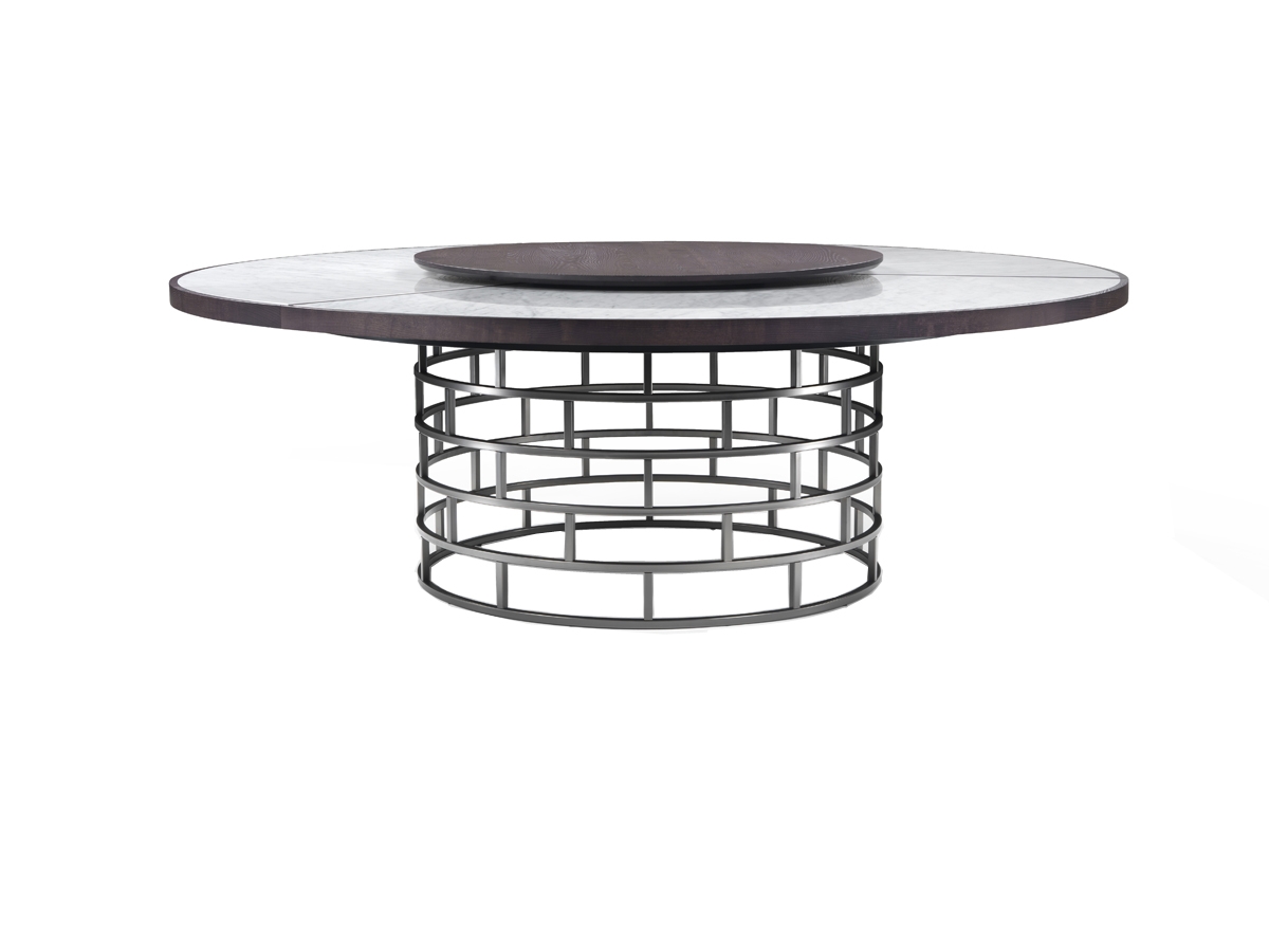 Crown di Flexform Mood è un tavolo destinato a durare nel tempo. La sua magnificenza e regalità rispecchia una sapiente cura dei dettagli. Sulla base, impreziosita da una griglia circolare in metallo, appoggia per contrasto un piano in legno massiccio che accoglie tre grandi spicchi di marmo intarsiato. L'uso combinato di questi due elementi conferisce al tavolo raffinatezza ed unicità. Al centro può essere previsto un comodo piano girevole Lazy Susan che, ruotando, consente di avvicinare ai commensali le varie portate. Disponibile in diverse dimensioni e colori. Contattaci oggi e richiedi il tuo preventivo.