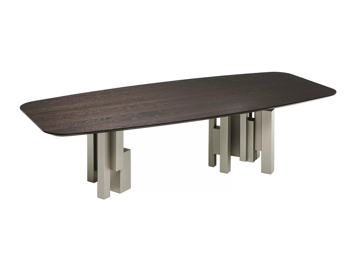 Skilyne è il un tavolo che conquista al primo sguardo il cui punto di forza sta tutto nella robusta base in acciaio il cui design richiama in modo quasi sfacciato il profilo spigoloso dei grattacieli americani. A fare da contrasto, però, è il top in legno il cui calore crea un equilibrio perfetto equilibrio generale. Contattaci per scoprire dimensioni e finiture disponibili.