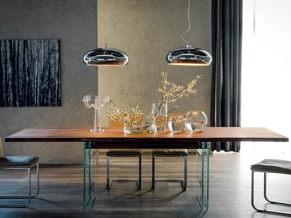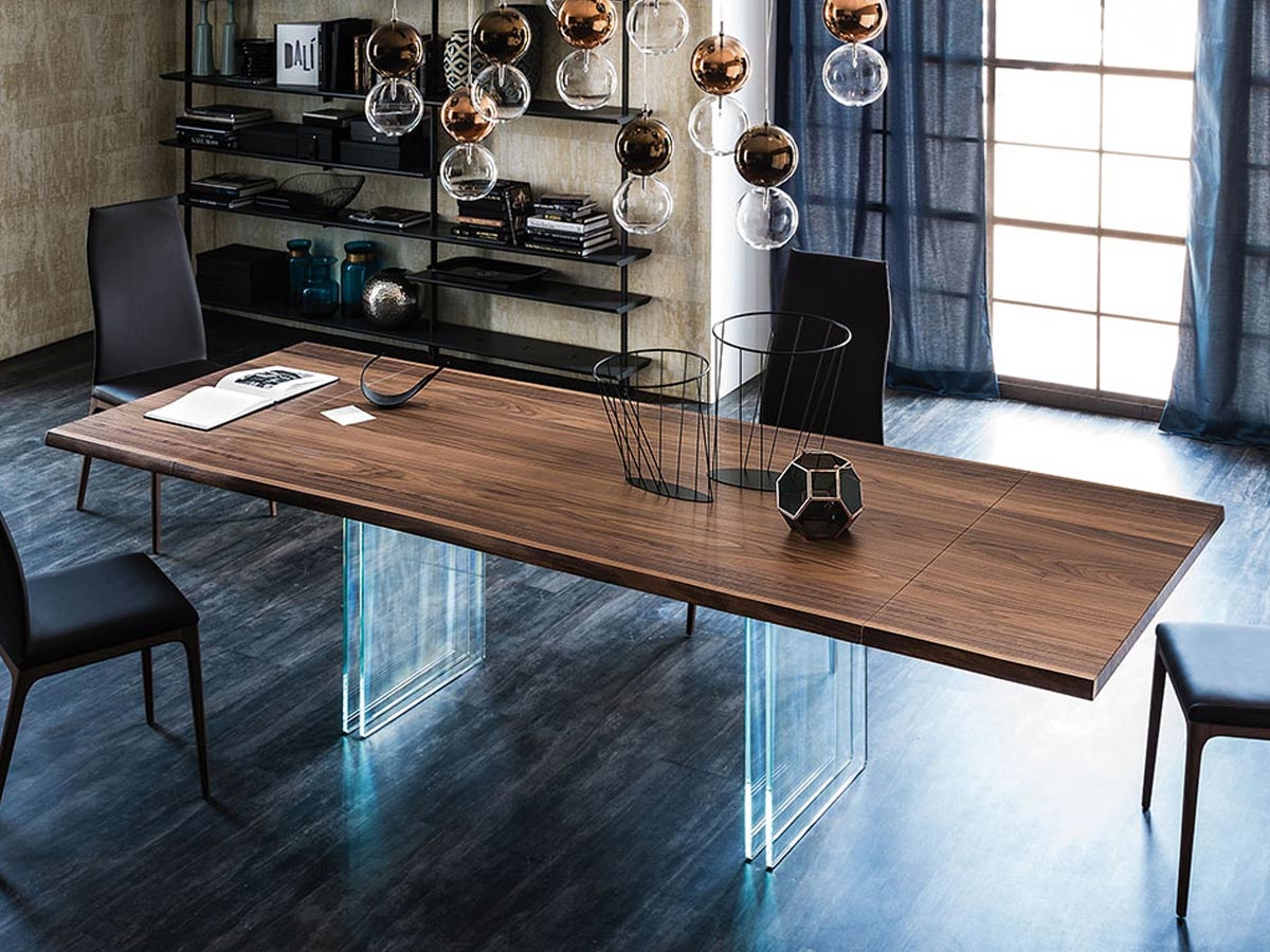 Ikon Drive di Cattelan Italia è un tavolo allungabile, moderno e raffinato. L’abbinamento inverso fra legno e vetro gli conferisce una leggerezza visiva senza eguali.