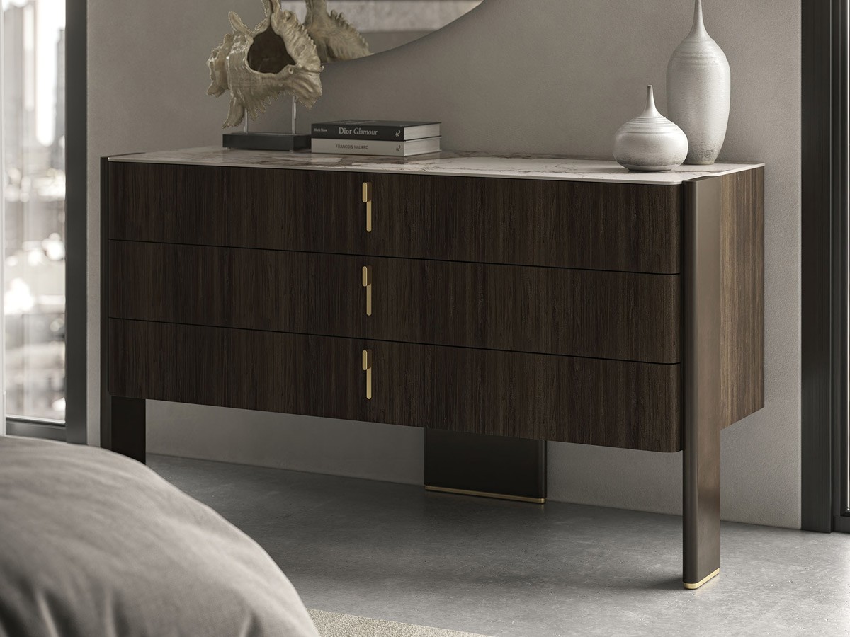 La cassettiera Julian di Cattelan Italia proposta dai designer di Tosca Design è un piacere per la vista! La combinazione saggia di elementi così diversi tra loro come il legno, la ceramica e l'acciaio rende questo complemento d'arredo moderno e indimenticabile. La cassettiera Julian fa parte di un gruppo notte omonimo che si caratterizza per il suo design moderno ma al tempo stesso elegante.