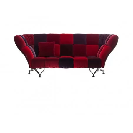 L'imbottitura è in schiume poliuretaniche e la struttura in acciaio.Il divano è interamente sfoderabile in velluto nei toni del rosso del blu e del grigio.