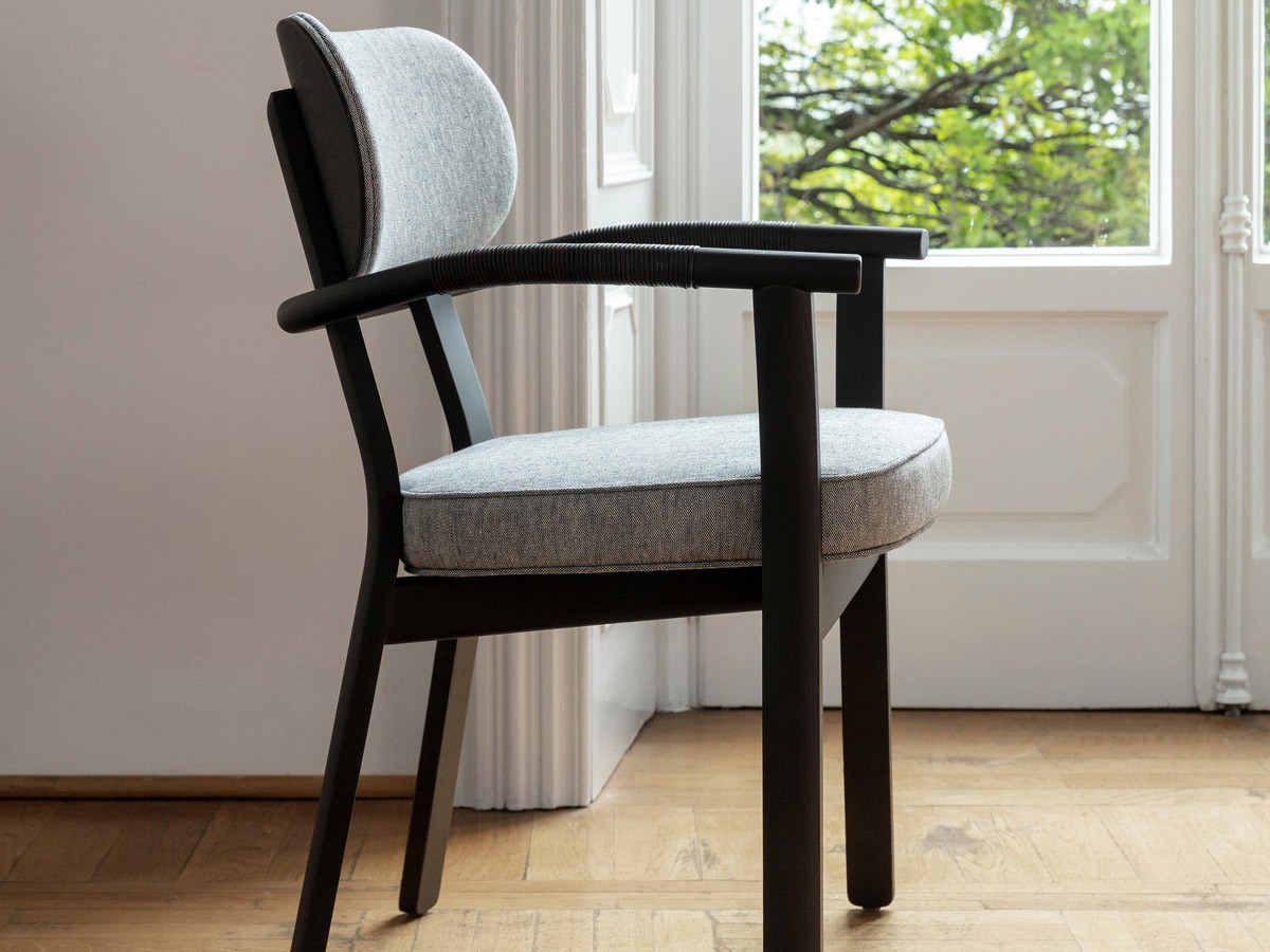 Porada的Evelin椅子 Evelin椅子,扶手上有细节 起居区的 Evelin 椅子 Porada 的 Evelin 椅子靠背的细节