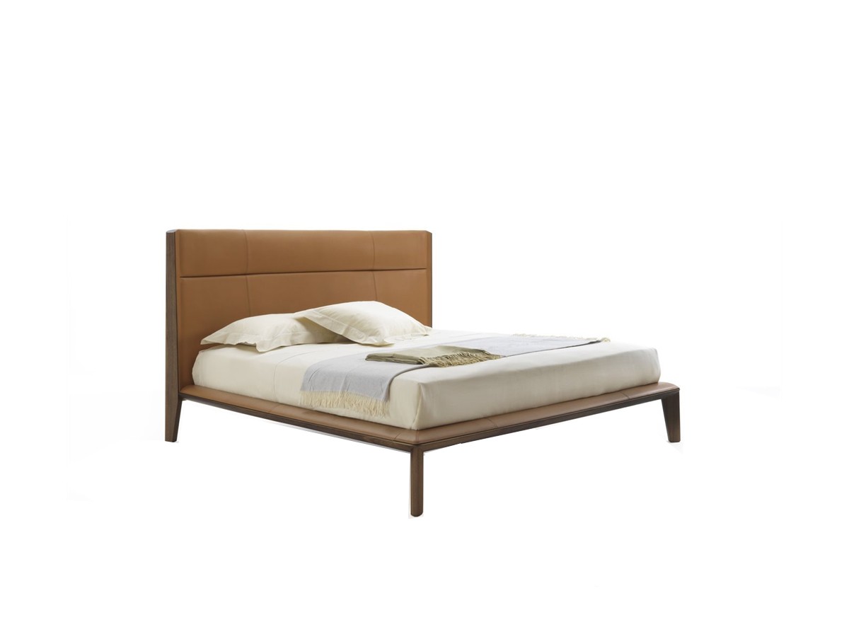 Nyan 双人床有不同的尺寸,床头板和床架有多种饰面和床罩可供选择。