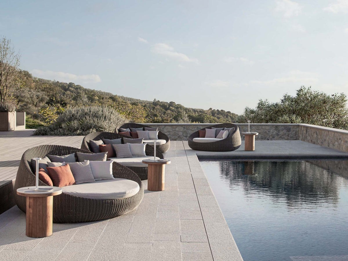 Twiga 是一款户外沙发,以其独特的形状吸引人们的注意,非常适合放松和完全放弃。它具有用于户外的铝框架环氧树脂涂料。手工编织的纤维覆盖物防水,耐盐,紫外线,雪和恶劣天气。不包括座椅和装饰性装饰。可根据要求提供保险。